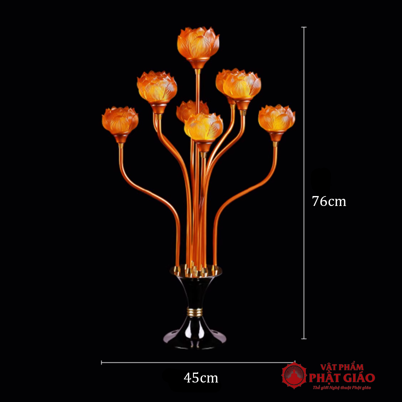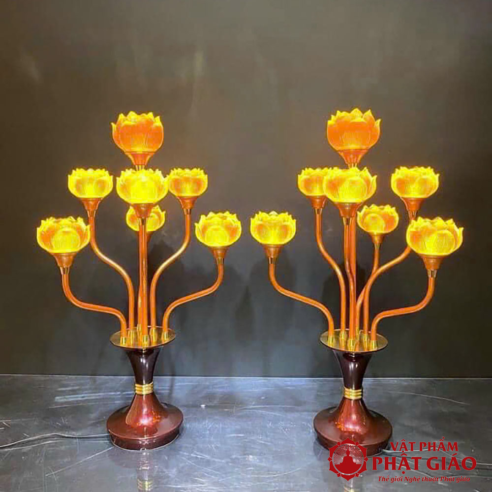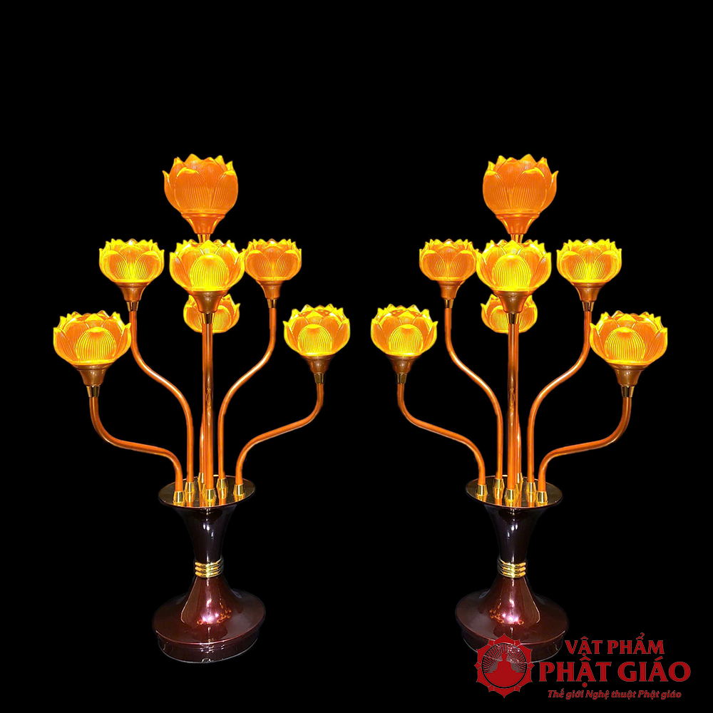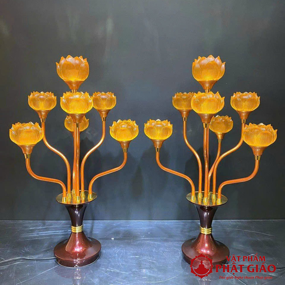 - Tên sản phẩm: Đôi đèn Hoa Sen Lưu Ly 7 Bông Cụp Thân Hợp Kim Đồng