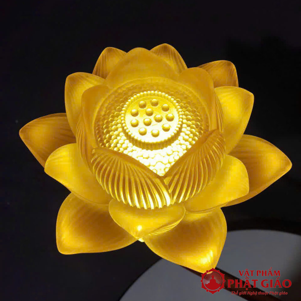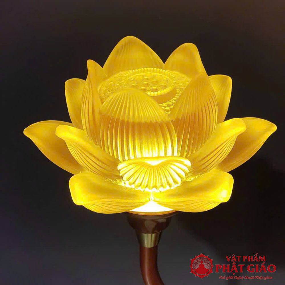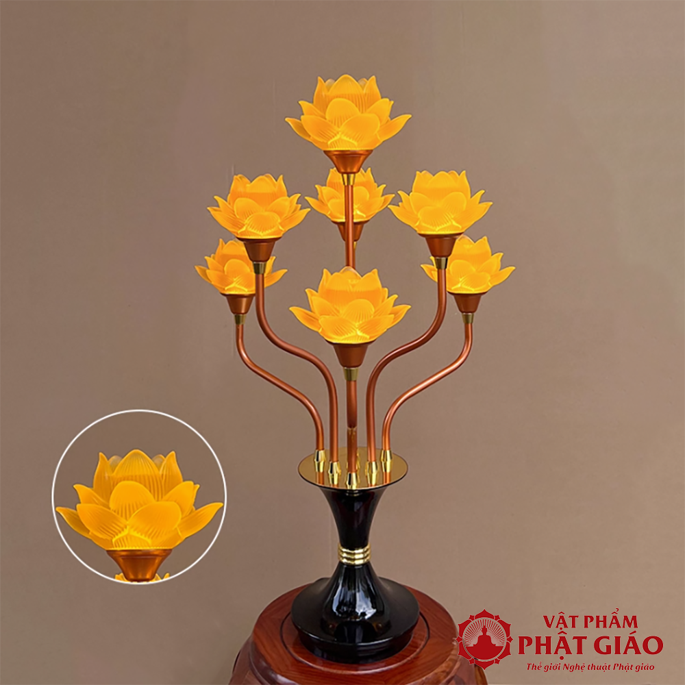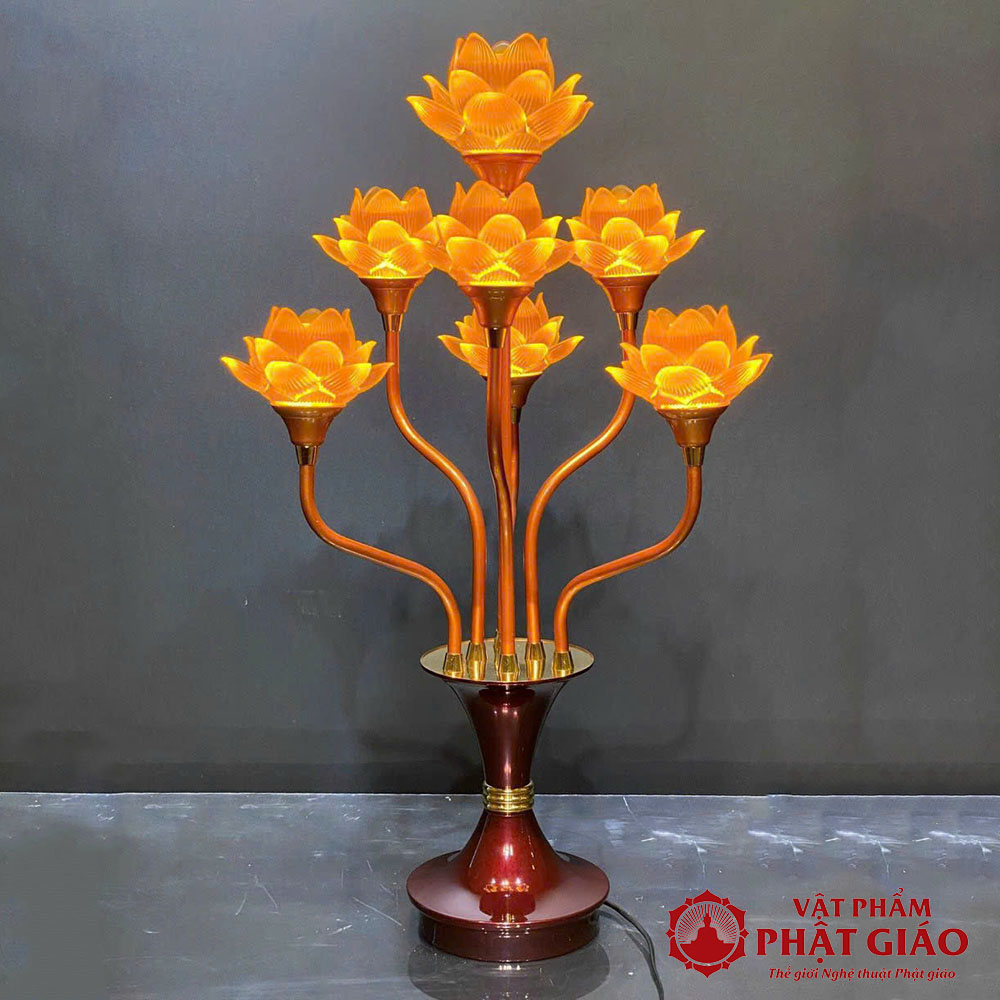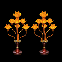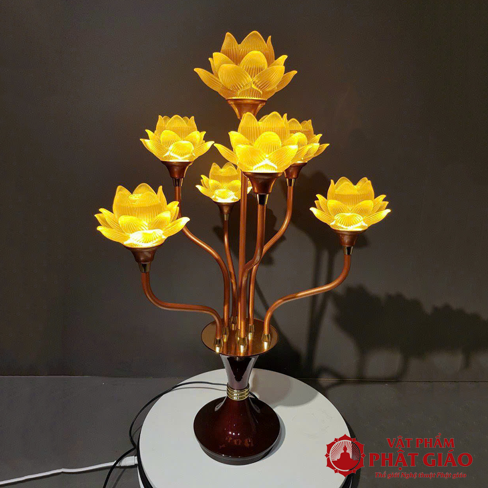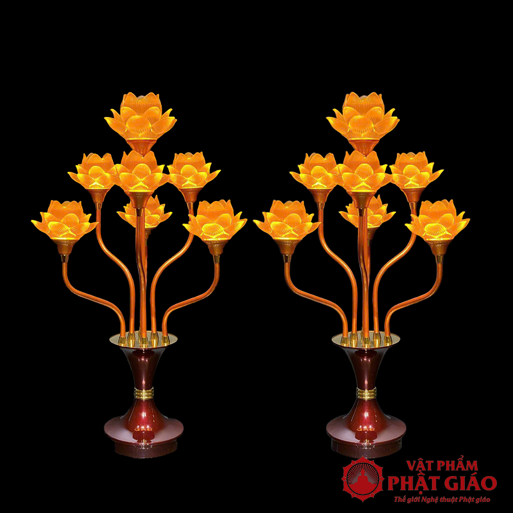 Đôi Đèn Hoa Sen Lưu Ly 7 Bông Nở, Cao 76cm