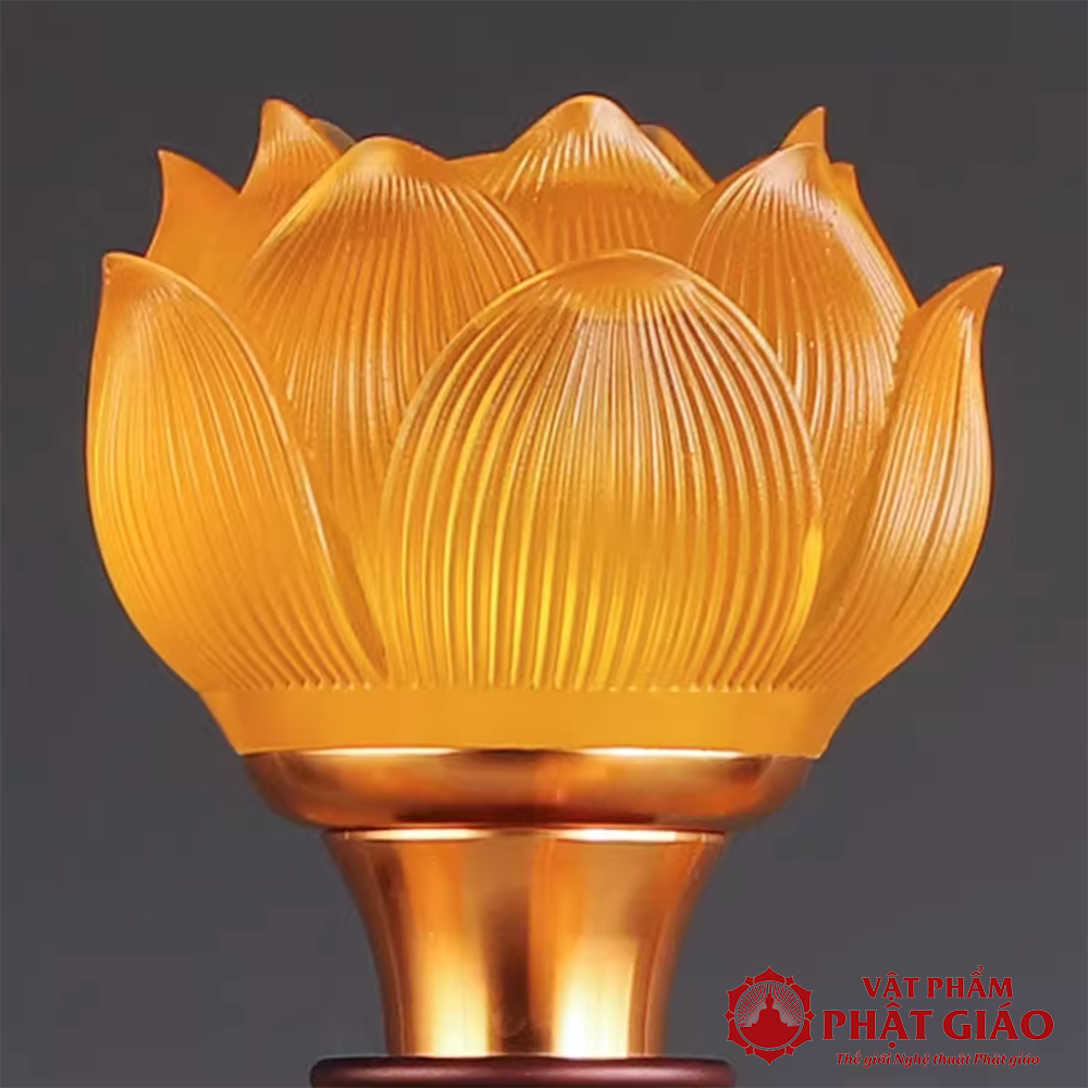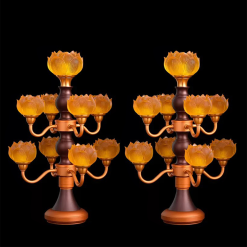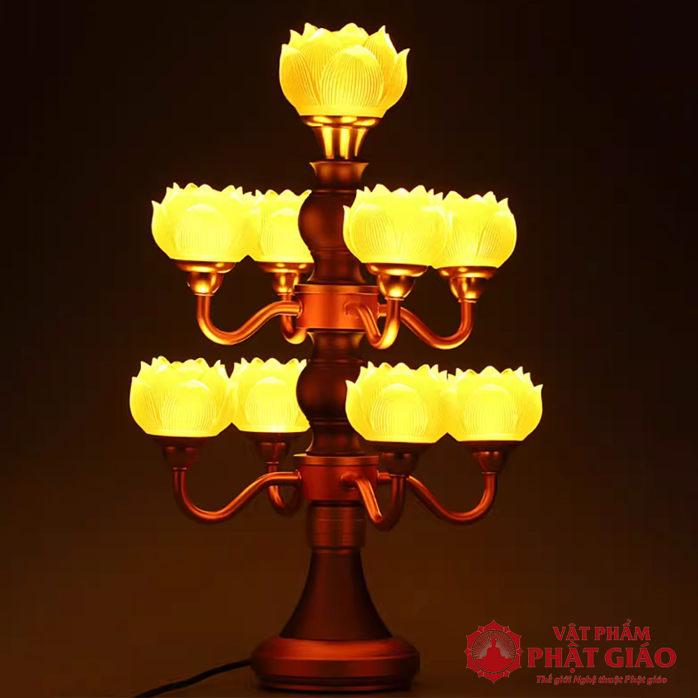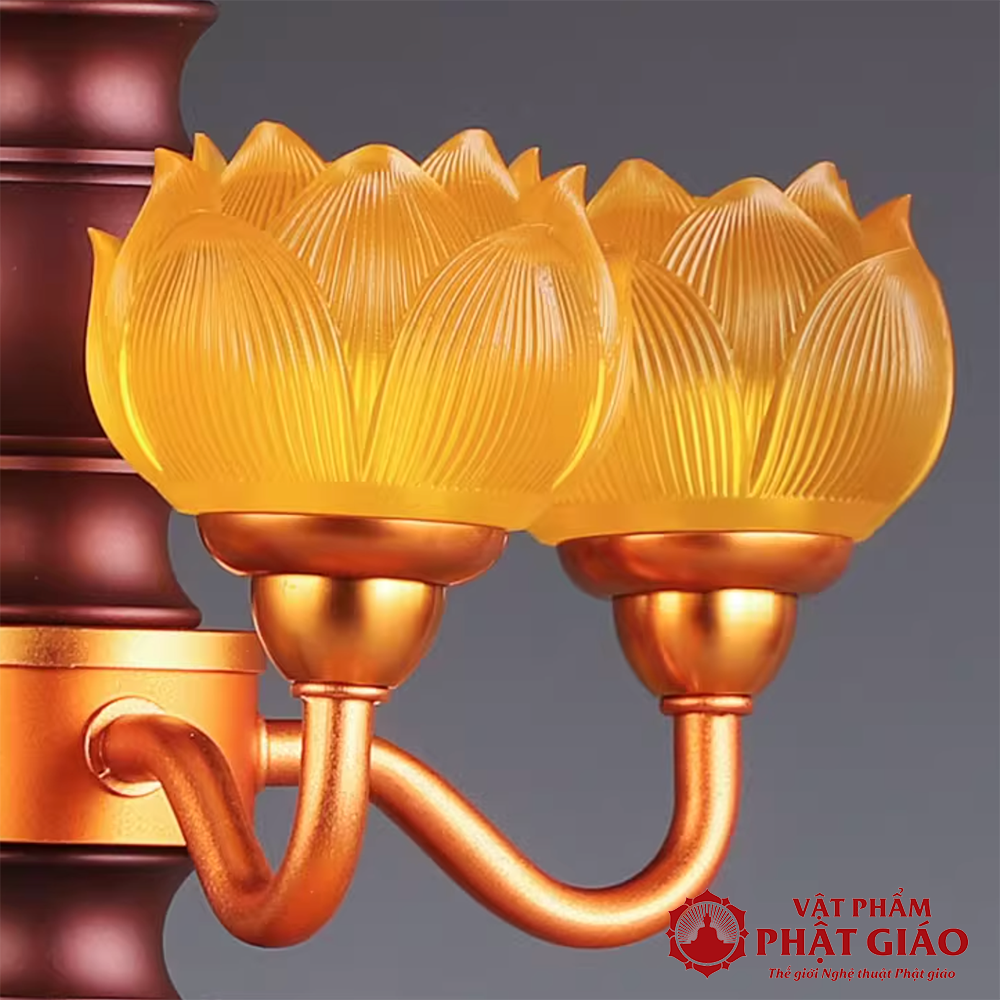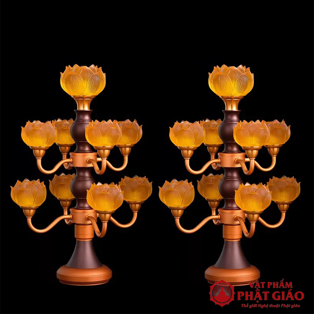 Đôi đèn thờ Hoa Sen Lưu Ly Thân Nâu Cổ, 9 Bông Cụp là sự kết hợp hài hòa giữa ánh sáng thanh tịnh, chất liệu sang trọng, tinh xảo, vừa tôn vinh không gian tâm linh, vừa thể hiện lòng thành kính của gia chủ hướng về Phật pháp, ông bà tổ tiên.