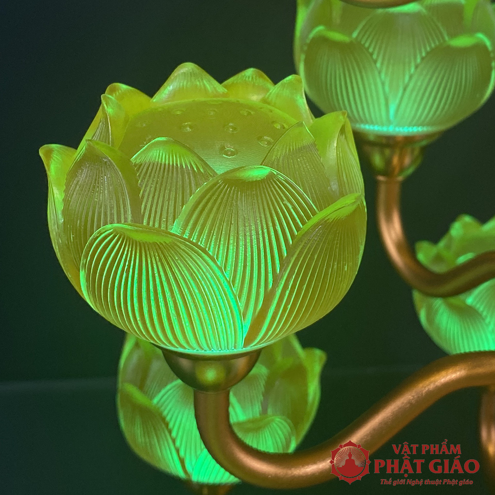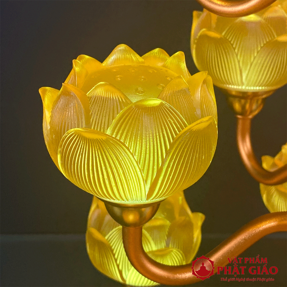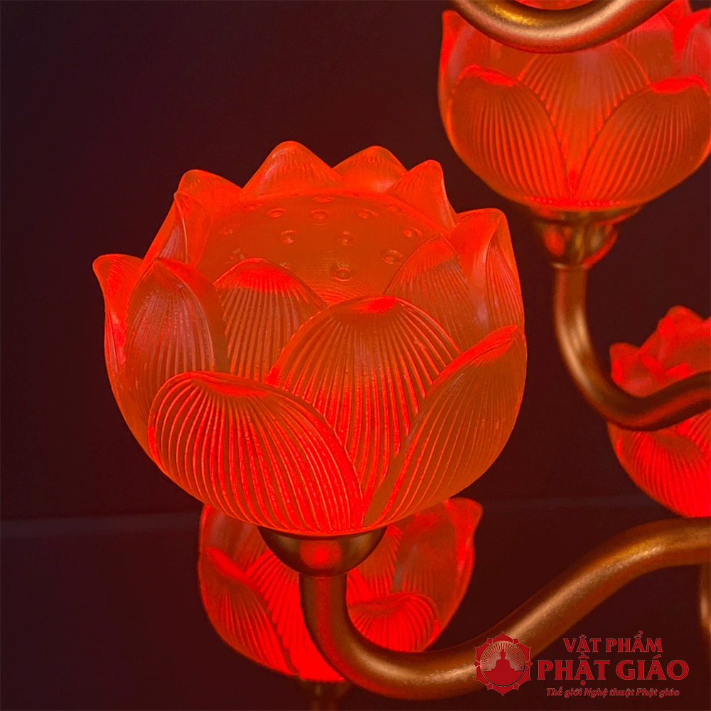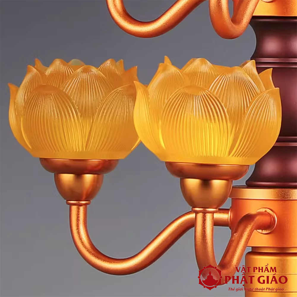 - Kiểu dáng: Đèn thiết kế 9 bông sen cụp tinh xảo, bố trí hài hòa trên thân đèn thanh thoát, gợi nét trang nhã nhưng đầy ý nghĩa.
