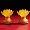 Đôi Đèn Hoa Sen Thủy Lưu Ly 1 Bông Nở Cổ Ngắn Cao 9cm