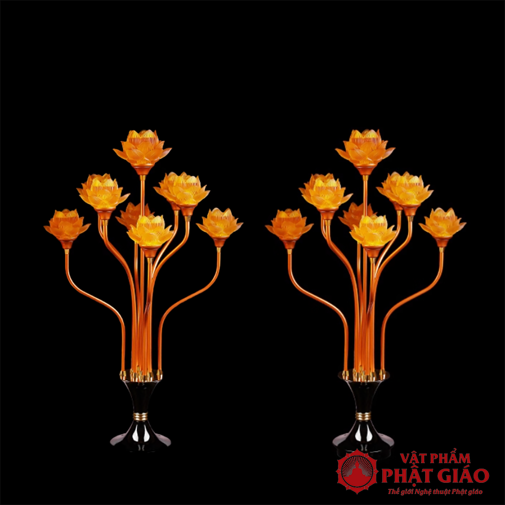 Đôi Đèn Hoa Sen Thủy Lưu Ly 9 Bông Nở không chỉ là vật phẩm trang nghiêm, mà còn là hiện thân của niềm tin, trí tuệ và sự thịnh vượng tâm linh. Mỗi bông sen nở là một lời nhắc nhở về sự khai sáng nội tâm, mỗi tia sáng lan tỏa là một ước nguyện an lành.