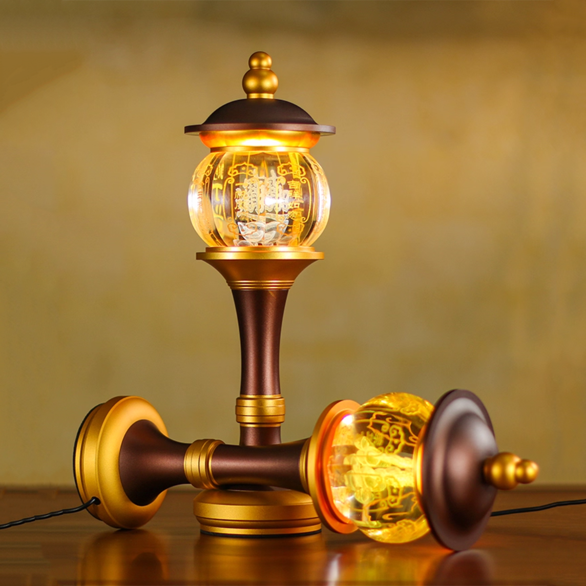 Đôi Đèn LED Thủy Tinh Nắp Ô In Chữ Phúc Chân Đồng không chỉ là vật phẩm thờ cúng tinh xảo, mà còn là lời gửi gắm lòng hiếu kính, niềm tin vào tổ tiên và khát vọng cho một cuộc sống ấm no, đủ đầy.