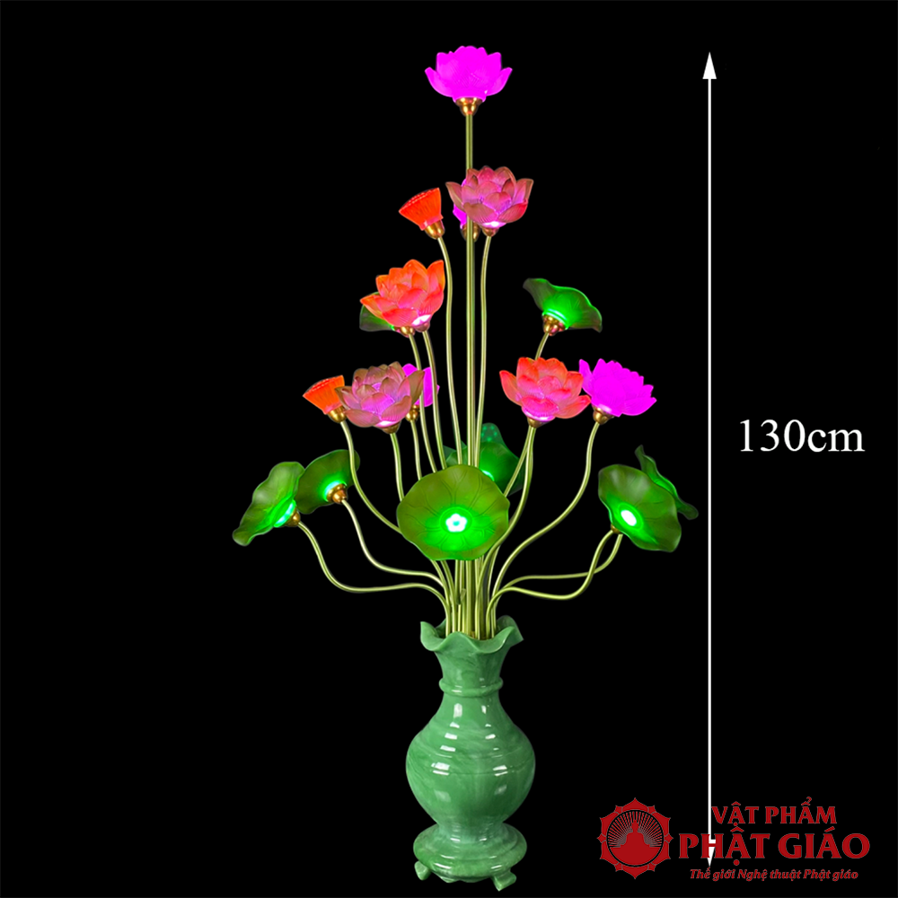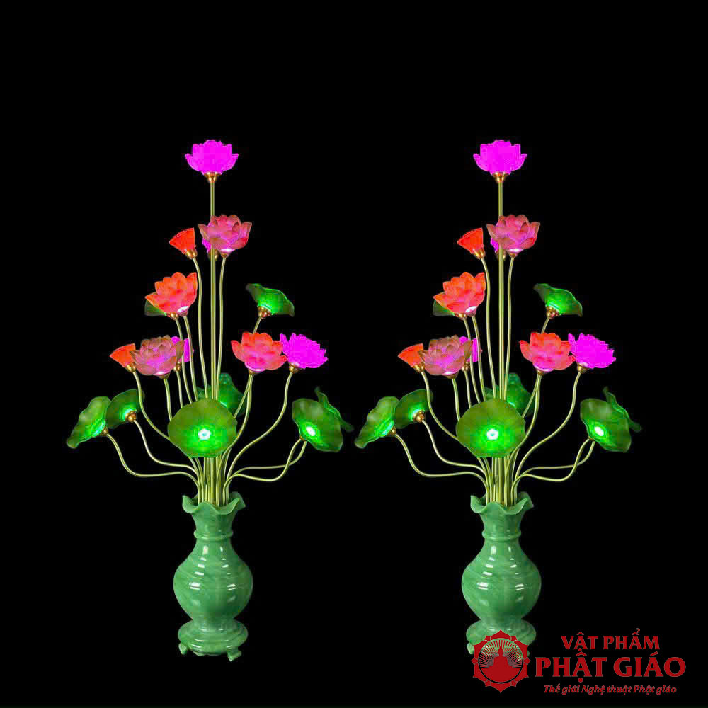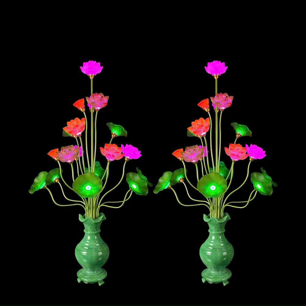 - Tên sản phẩm: Đôi đèn Thờ Bình Ngọc Hoa Sen Lưu Ly 13 Bông Nhiều Màu