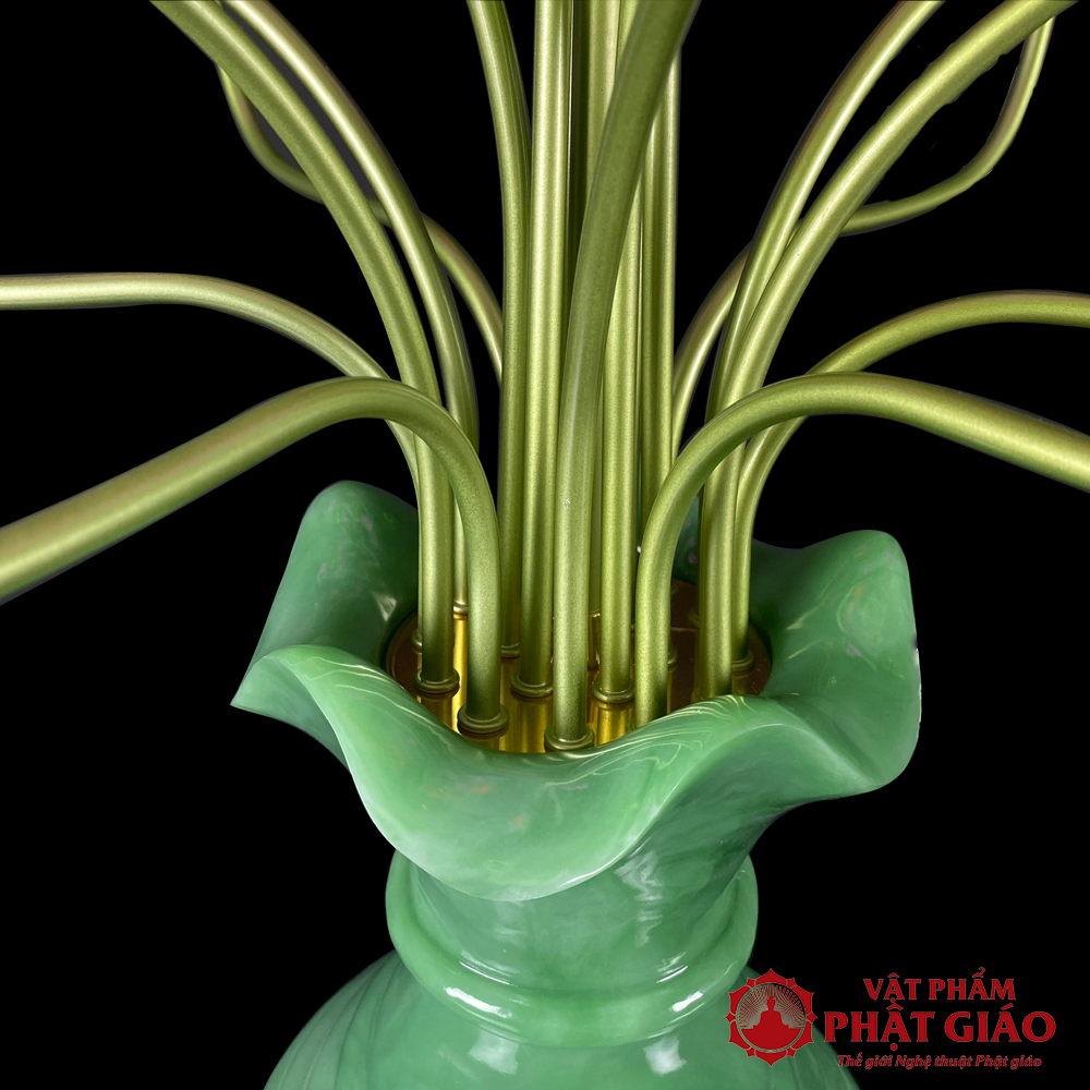 - Chất liệu: Thân bình ngọc cao cấp, bông đèn bằng lưu ly tinh khiết, tỏa ánh sáng nhẹ nhàng nhiều màu sắc.