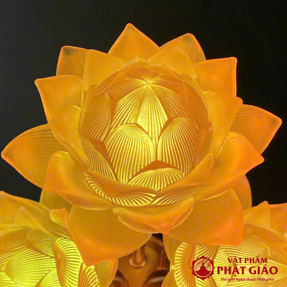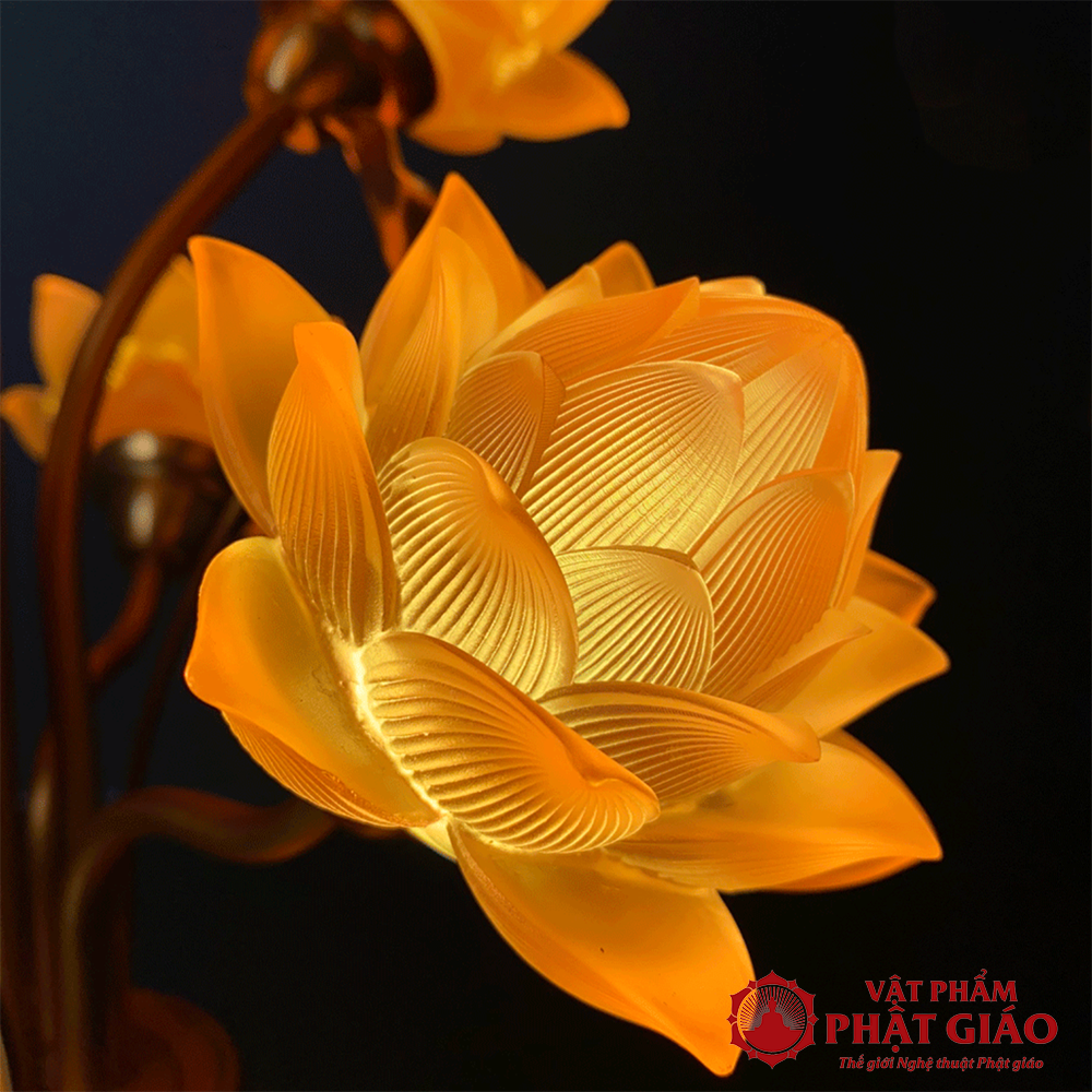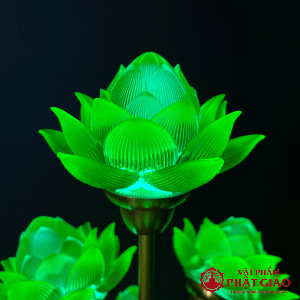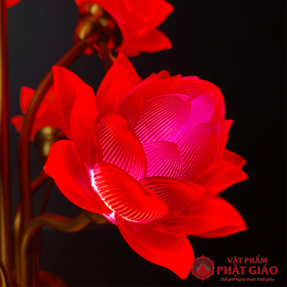 Đôi đèn hoa sen Thịnh Thế Hoa Khai 9 Bông vừa biểu hiện lòng tôn kính Tam Bảo, vừa là lời cầu chúc gia đình luôn sum vầy, an nhiên, con cháu hiếu thuận, phúc lộc lâu dài. Ánh sáng dịu dàng từ những bông sen như xua tan u tối, mang lại năng lượng tích cực, soi sáng tâm hồn trên con đường tu tập và hướng thiện.