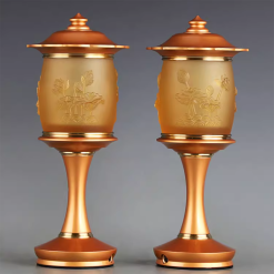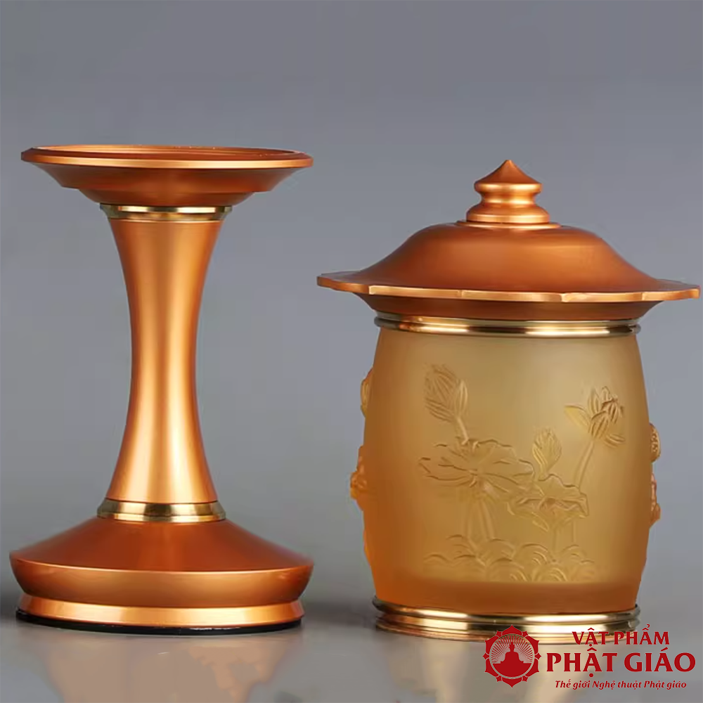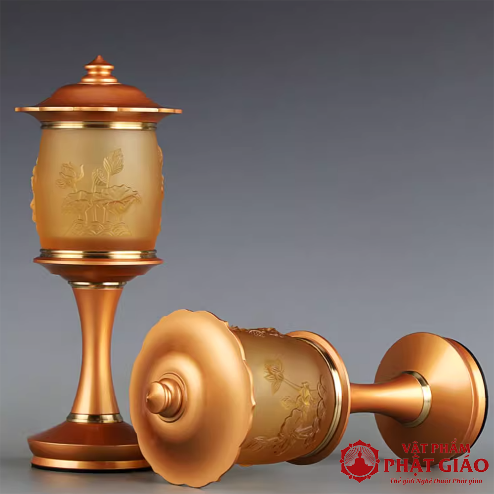 Đôi Đèn Thờ Lưu Ly Chạm Hoa Sen Nổi Chân Đồng là vật phẩm không thể thiếu cho không gian thờ cúng mang chiều sâu tâm linh, đồng thời tôn lên nét thanh khiết, trang nghiêm và ấm cúng.