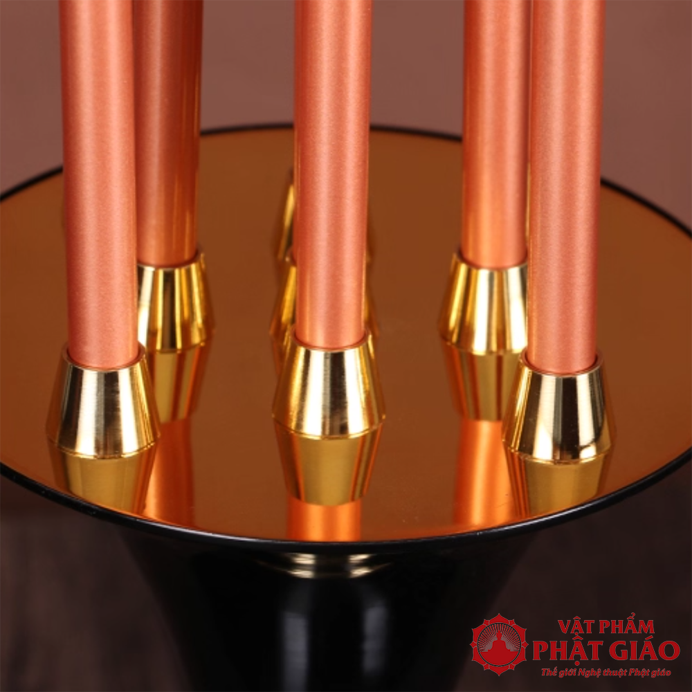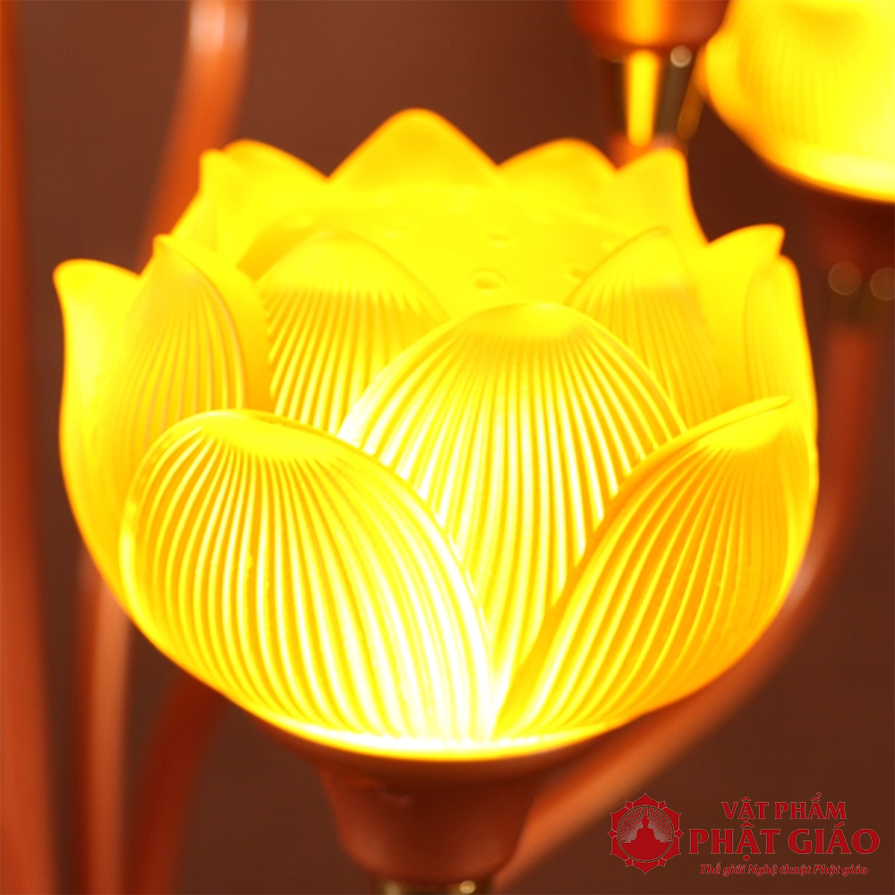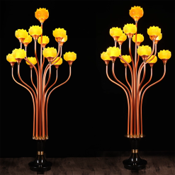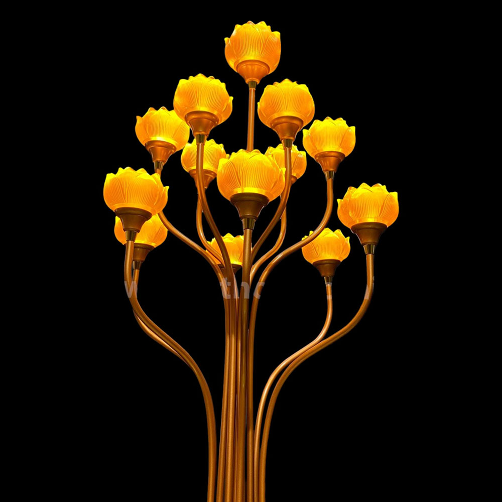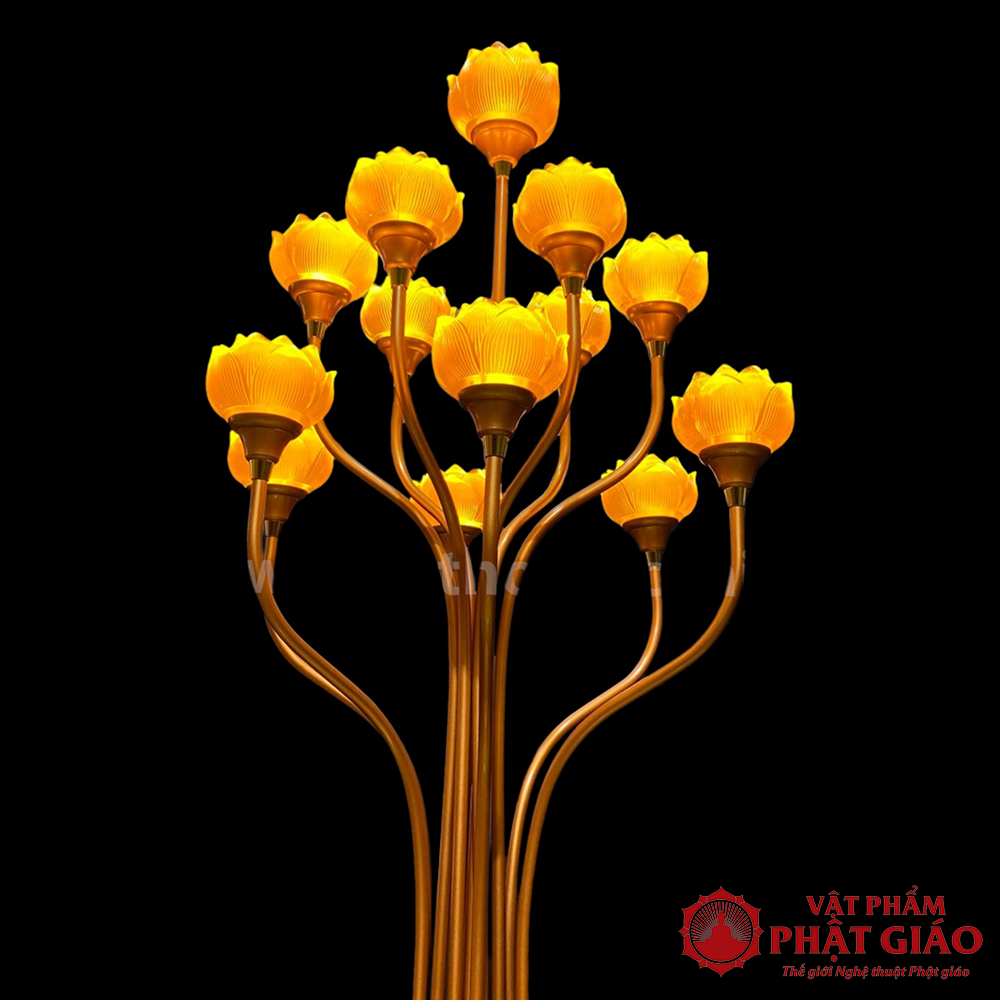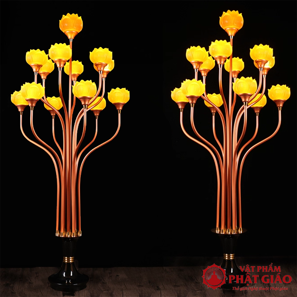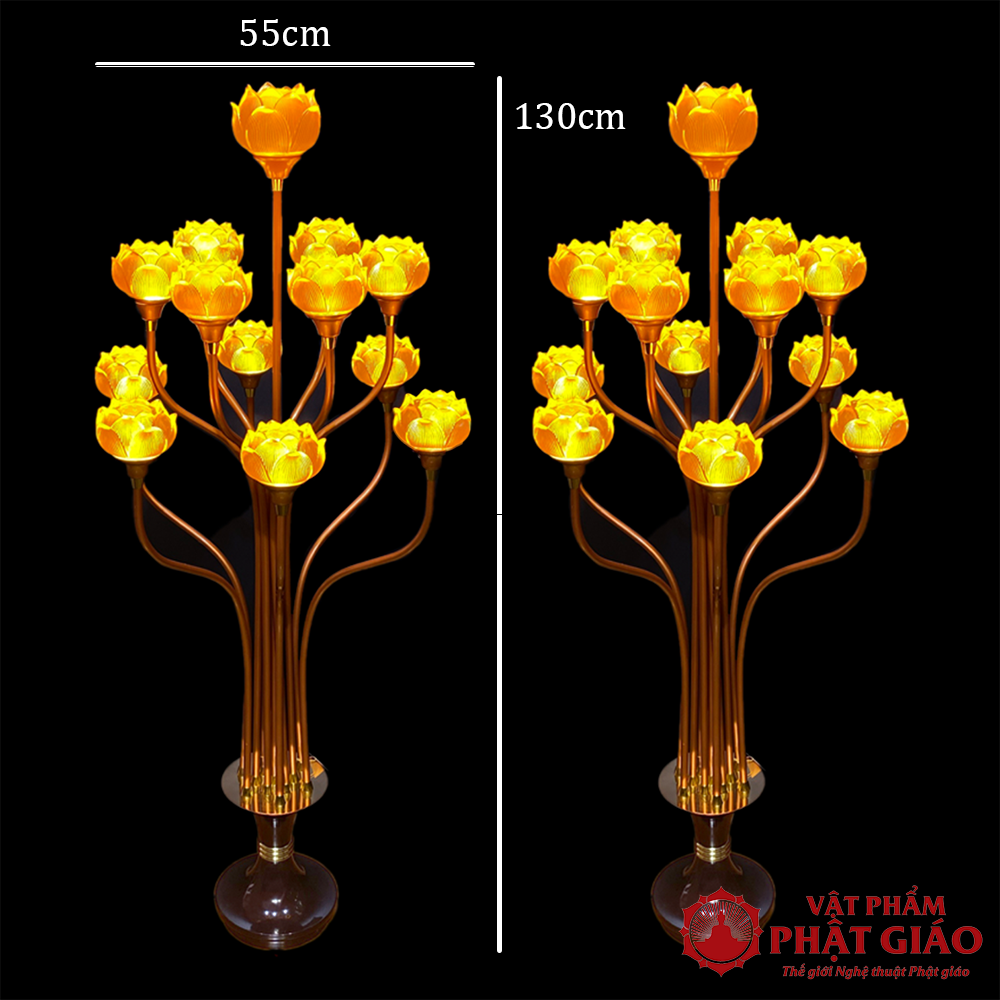 Đôi Đèn Thờ Lưu Ly Chân Hợp Kim Đồng, 13 Bông Cao 130cm