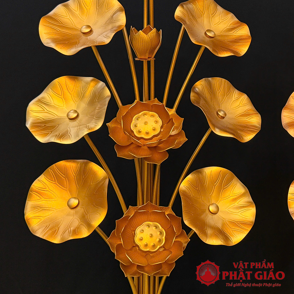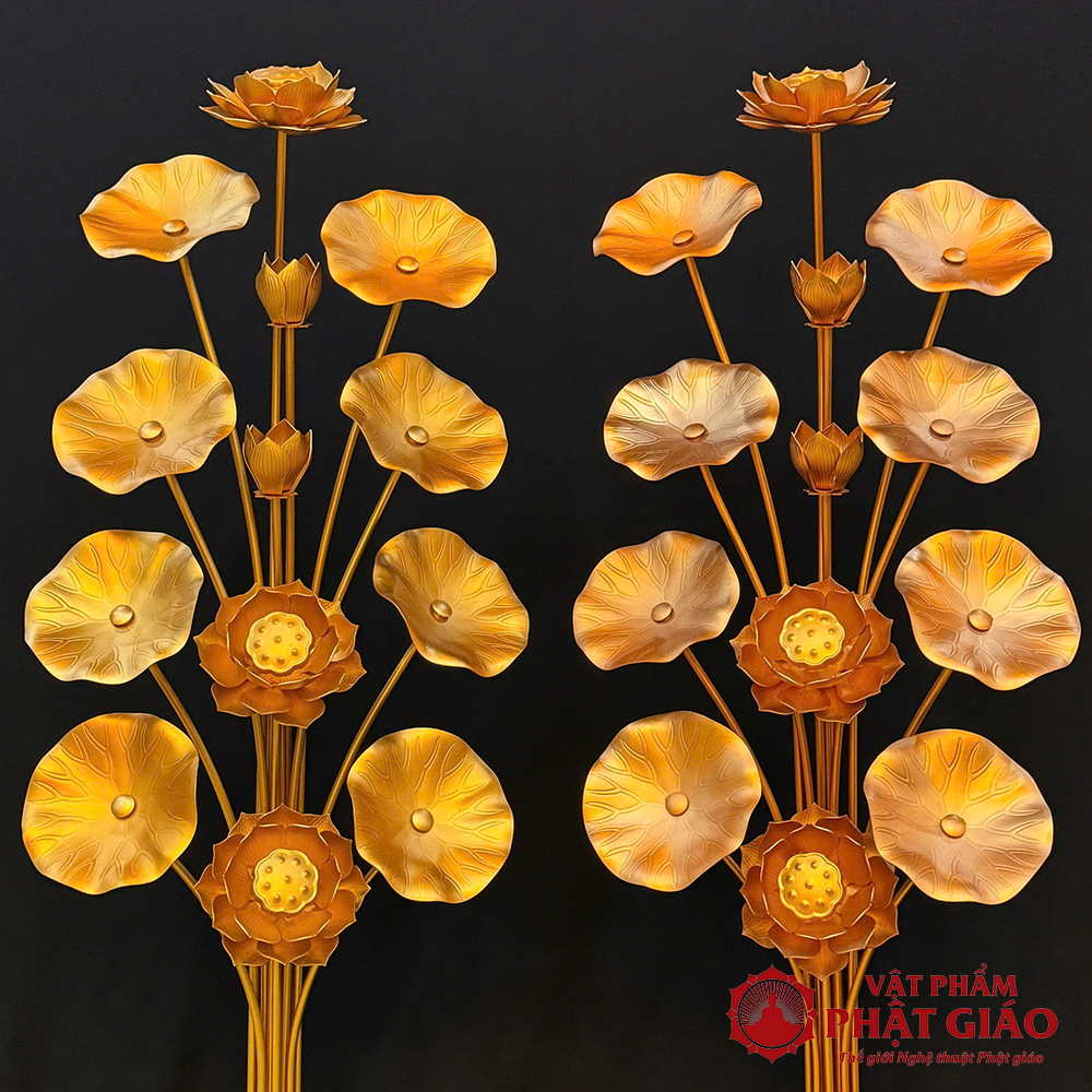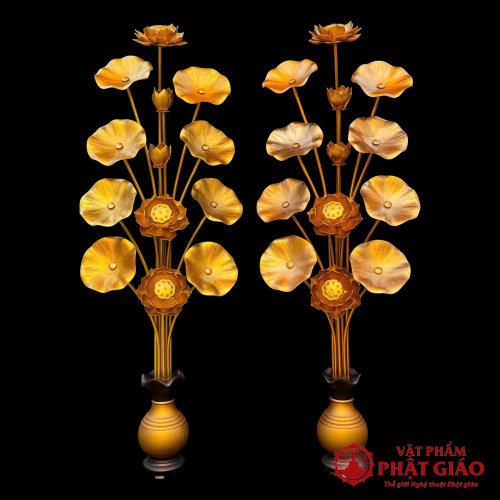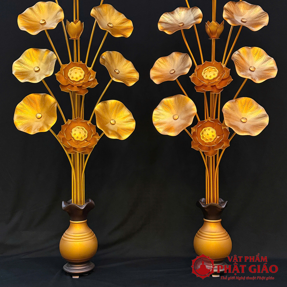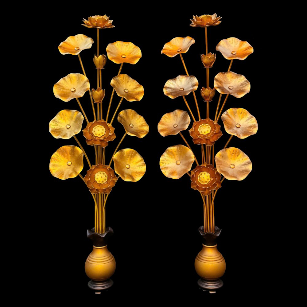 Đôi Lọ Hoa Sen Bằng Hợp Kim Nhôm 13 Bông Vàng, Cao 1m2