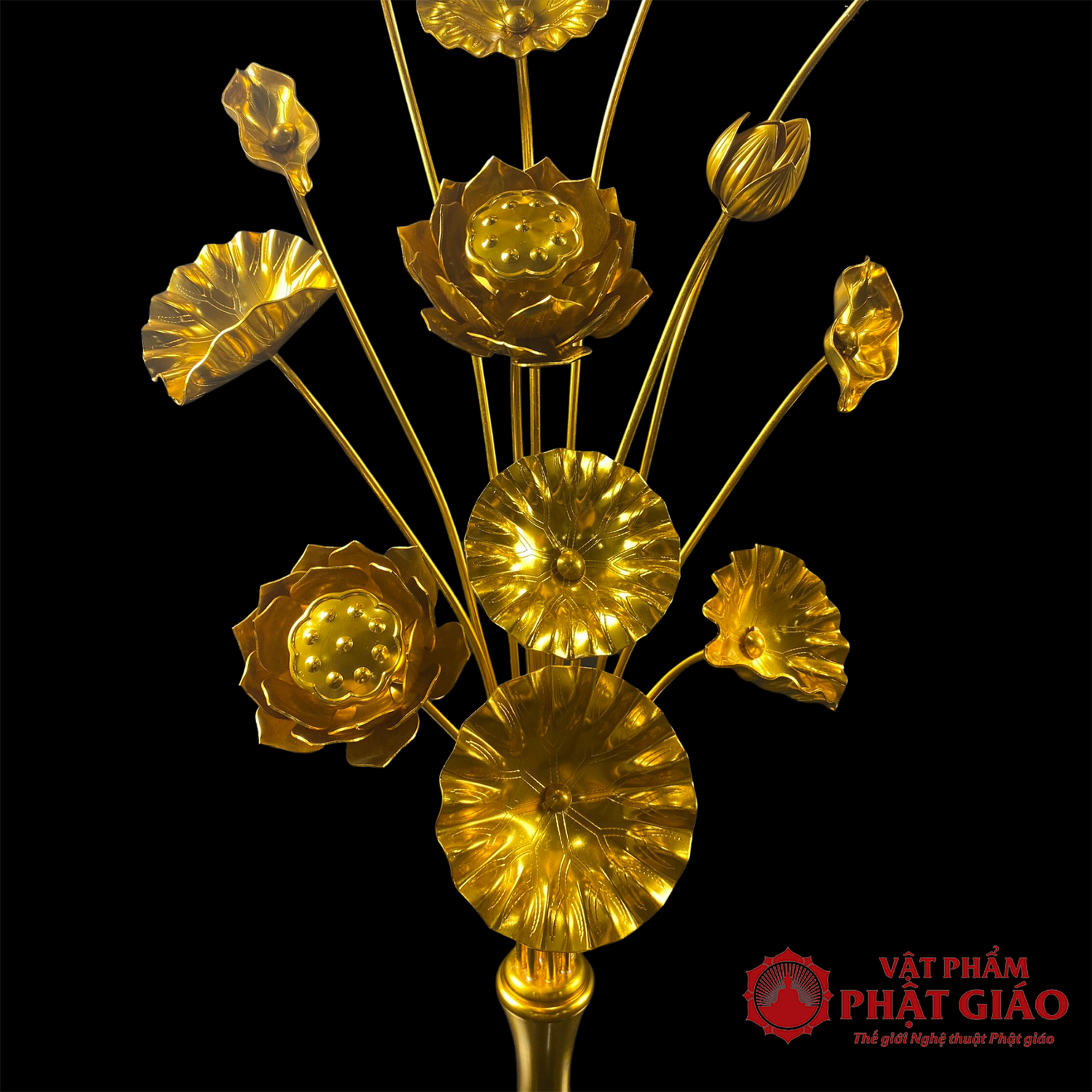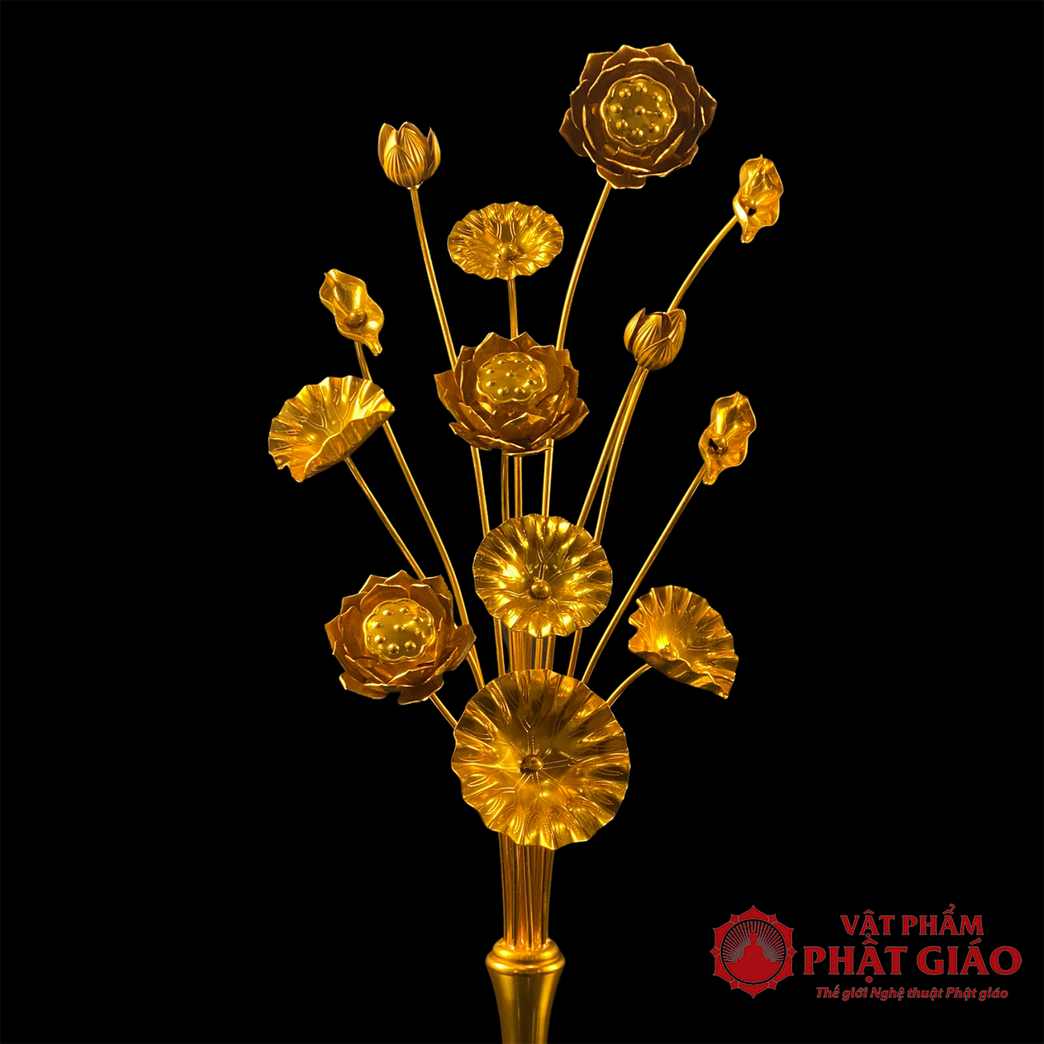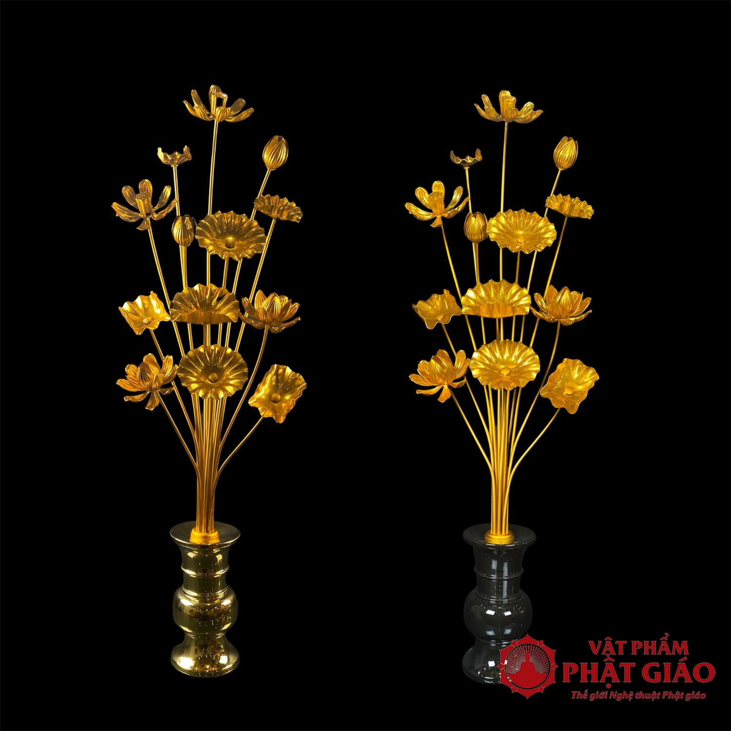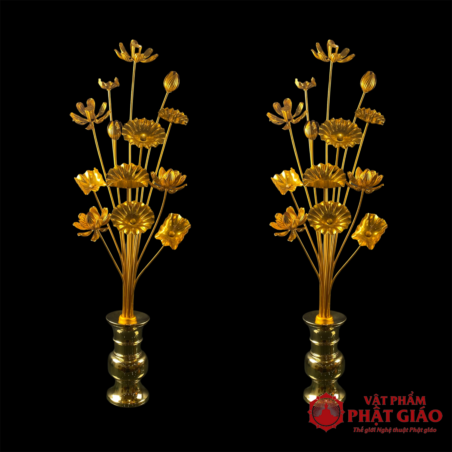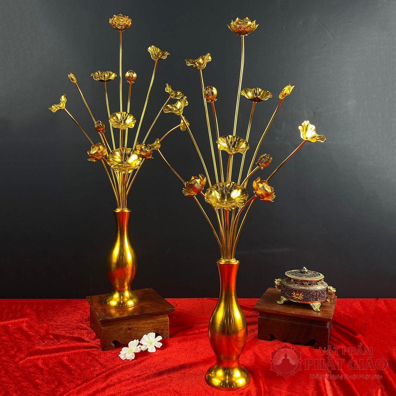 Đôi Lọ hoa Sen Nhôm 13 Bông Vàng Cao Cấp