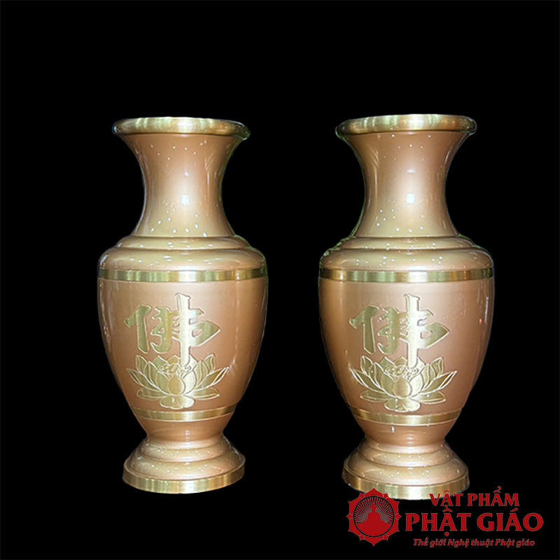 Lọ Hoa Bằng Đồng Sơn Vàng Chữ Phật Hoa Sen Cao Cấp
