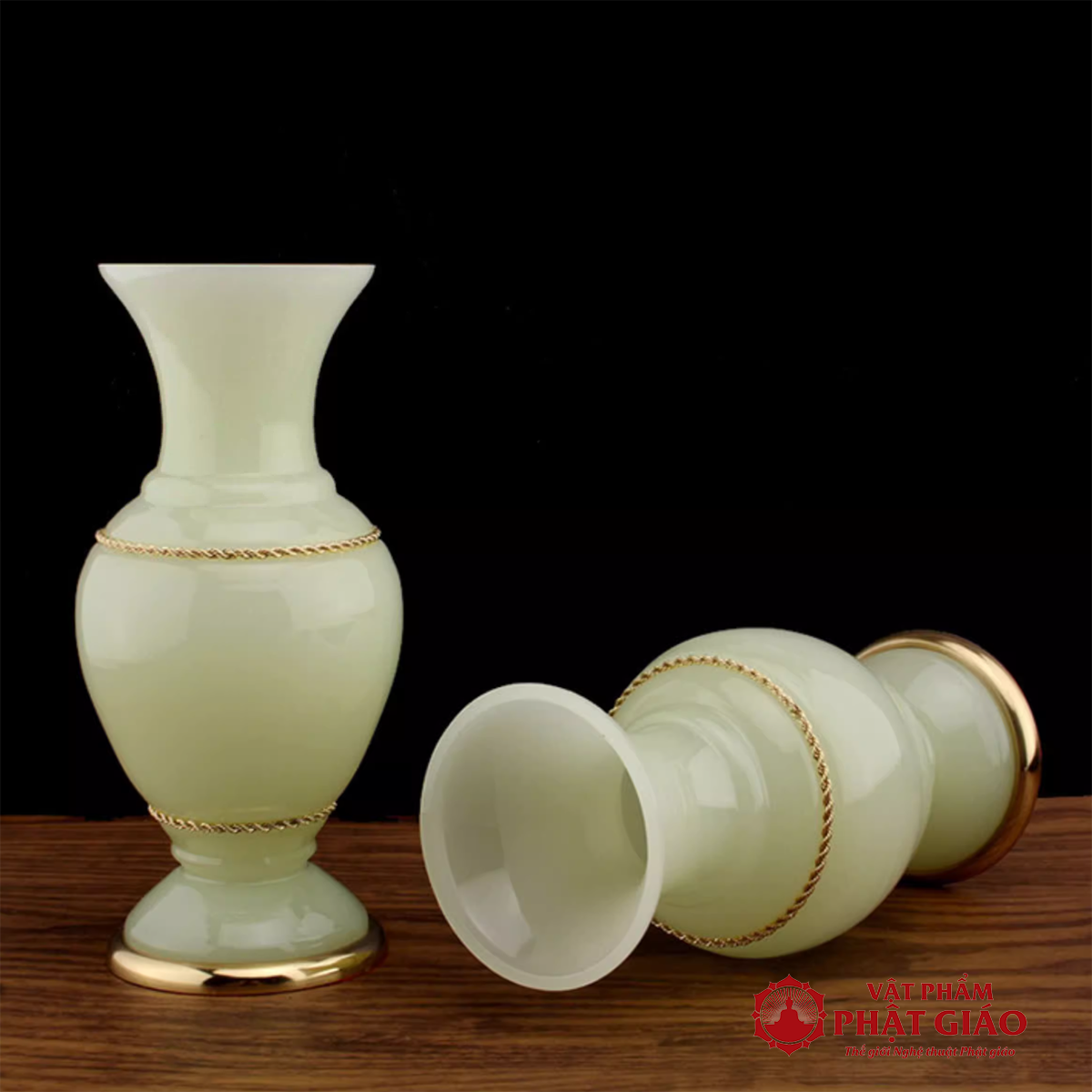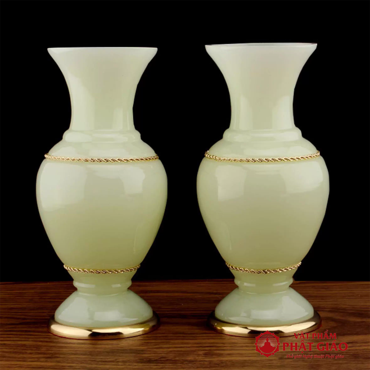 ● Công dụng: dùng để cắm hoa sen, hoa huệ, hoa tươi hoặc hoa lụa dâng Phật, tổ tiên. Có thể đặt đôi hai bên bát hương hoặc phối hợp cùng các vật phẩm bằng lưu ly, đồng, gốm sứ cao cấp tạo nên không gian thờ tự thanh tịnh và trang nghiêm.