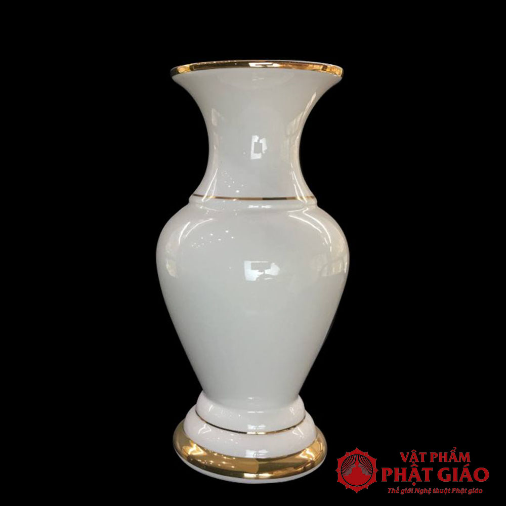 Lọ Hoa Để Ban Thờ Bằng Sứ Trắng Viền Vàng Nhiều Kích Thước
