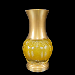 Lọ Hoa Lưu Ly Miệng Đồng Kim Ngọc Màu Hổ Phách Cao 24cm