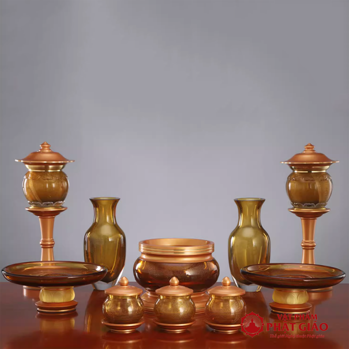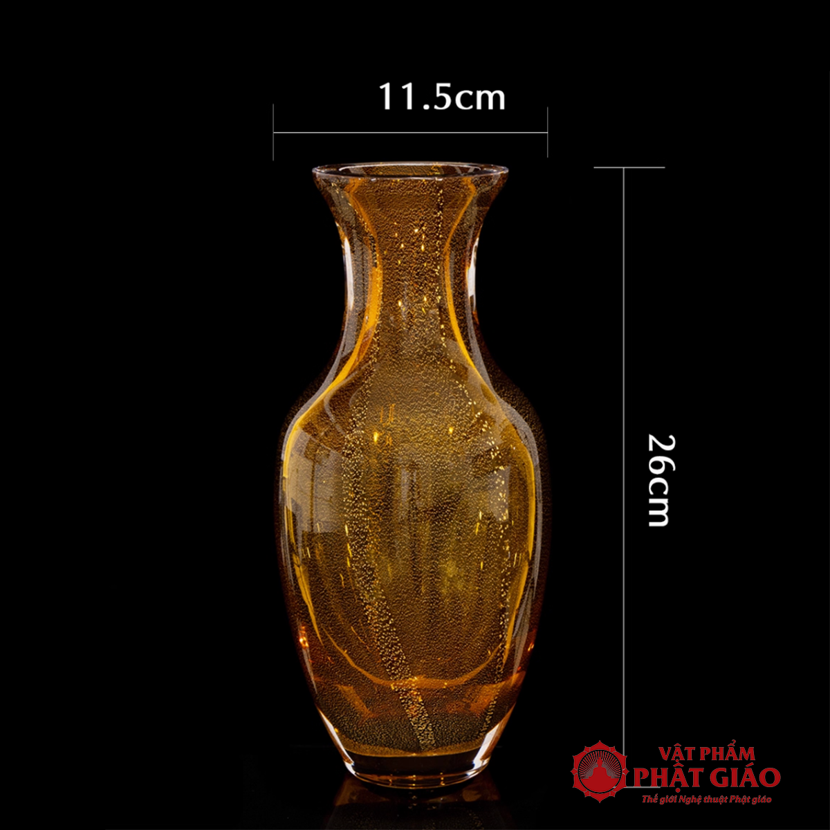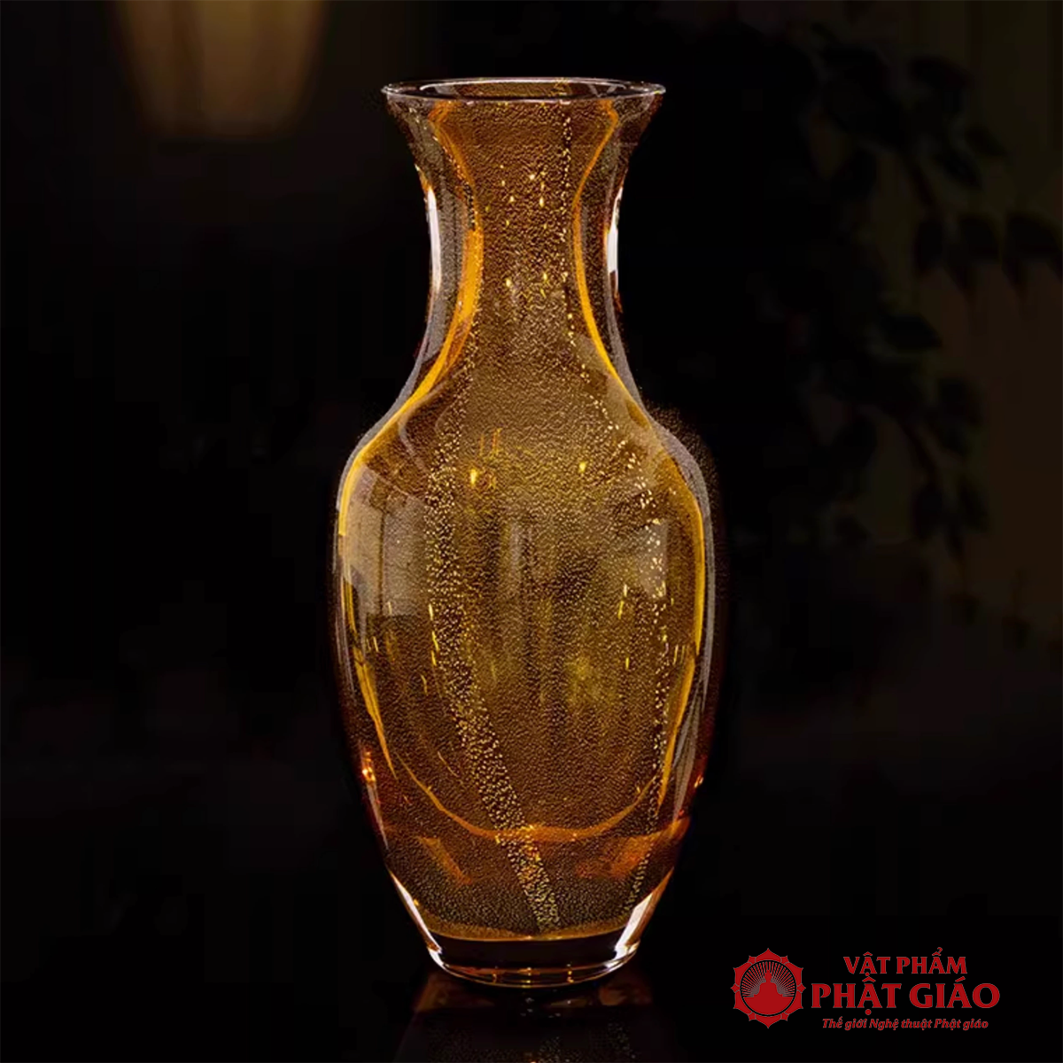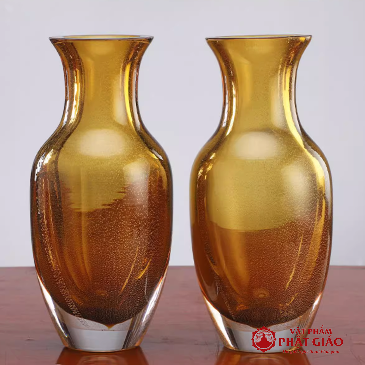 Lọ Hoa Lưu Ly Quan Âm Kim Ngọc Màu Hổ Phách, Cao 26cm