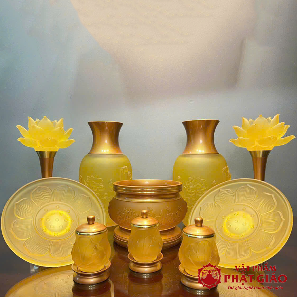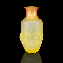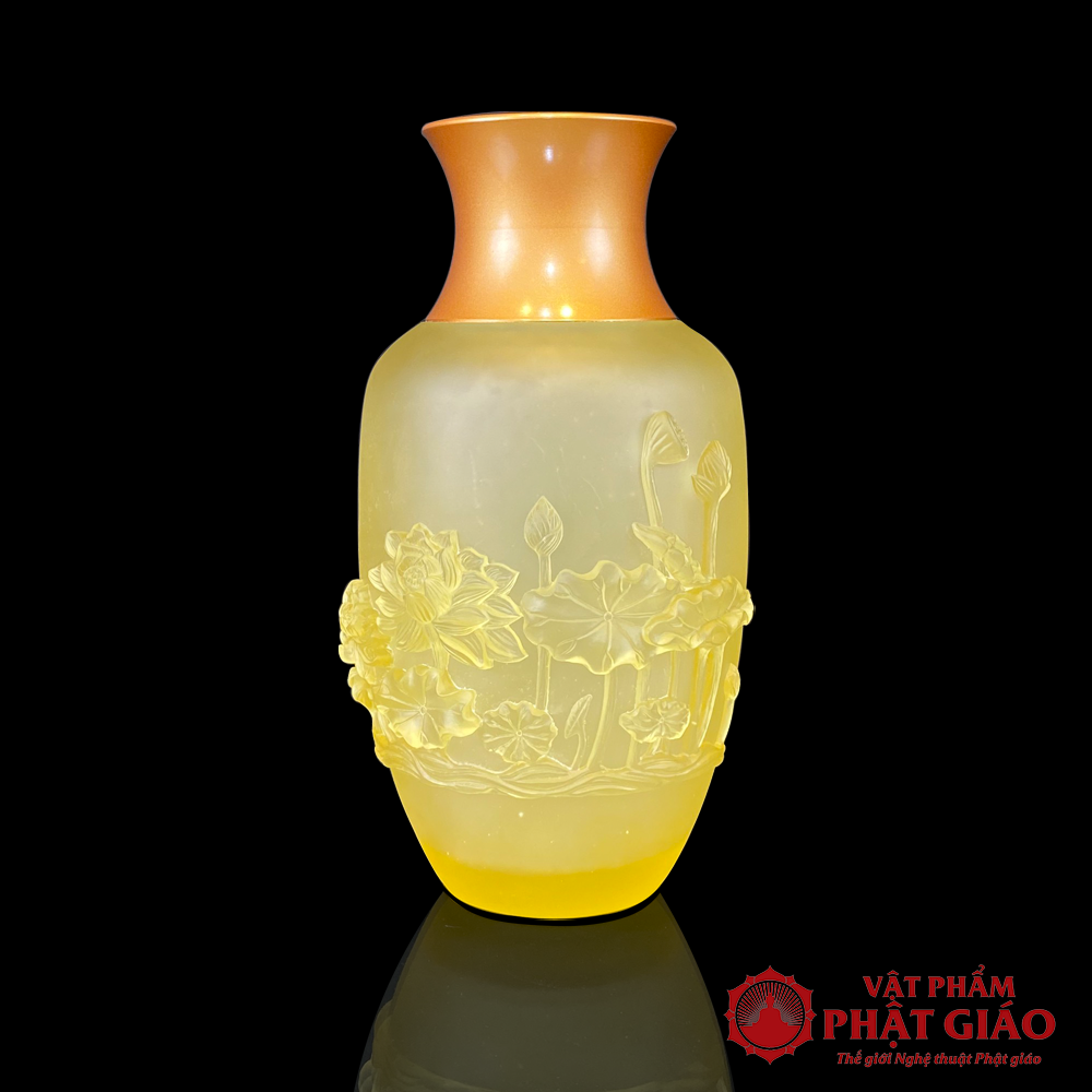 Lọ Hoa Lưu Ly Thanh Liên Miệng Đồng Vàng Sen Nổi, Cao 30cm