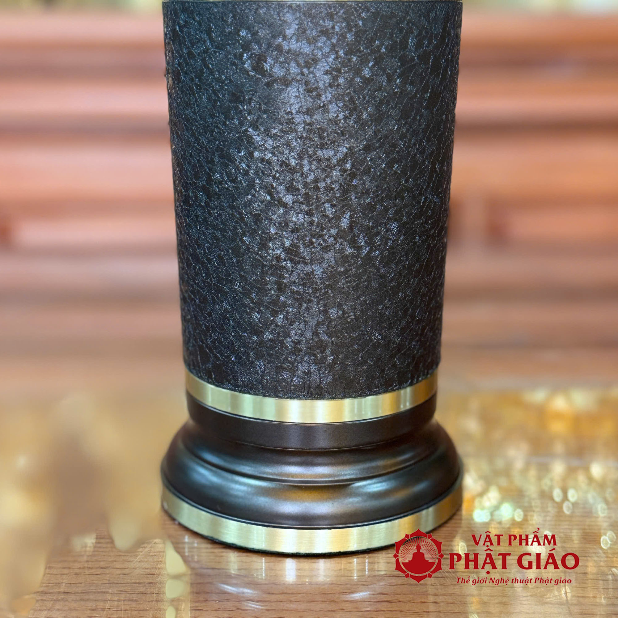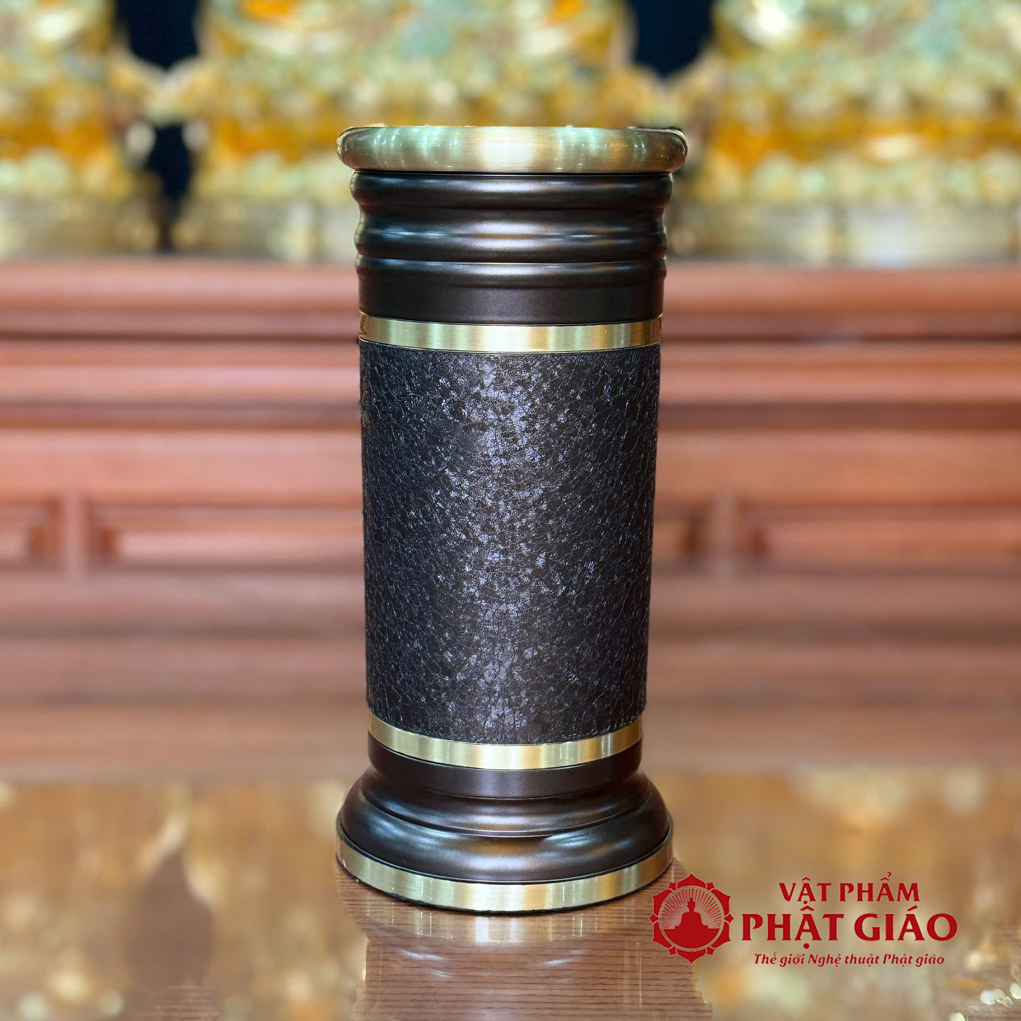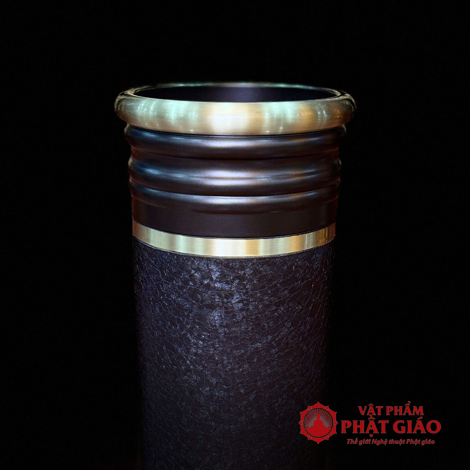 Ống Hương Bằng Đồng Vân Đá, Màu Đen Sần, Cao 20cm, 22.5cm