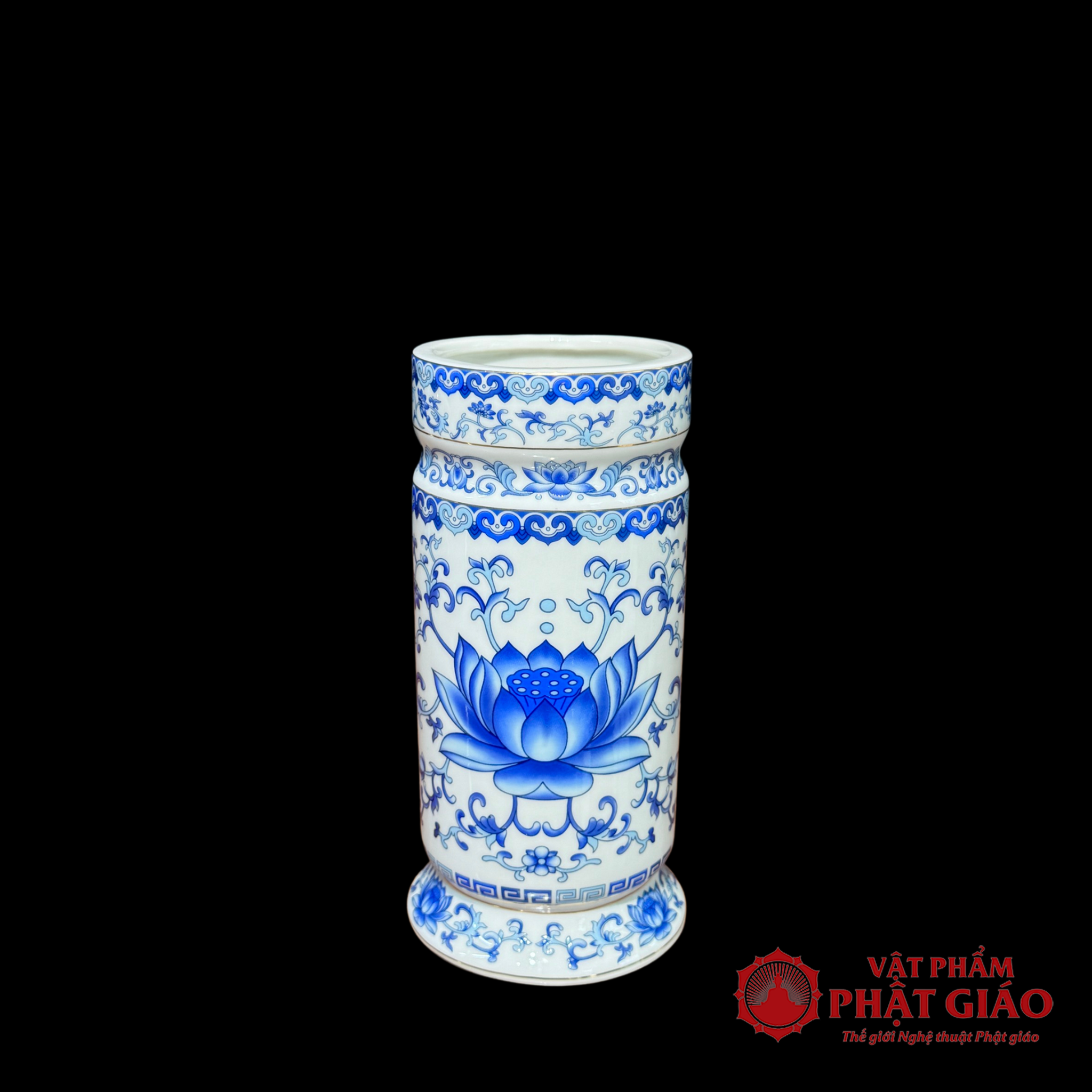 Ống Hương Sứ Trắng Hoa Sen Xanh, Cao 20cm, 25cm