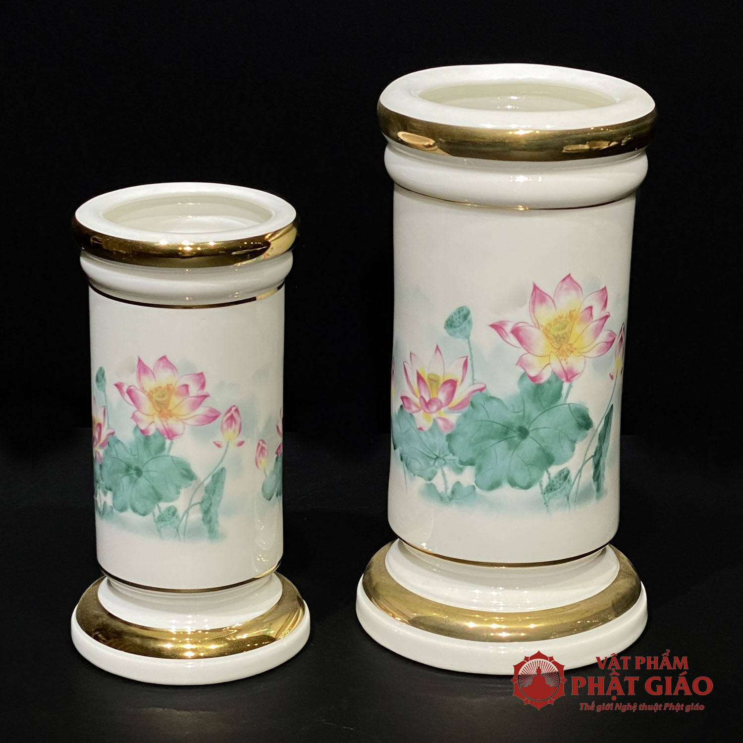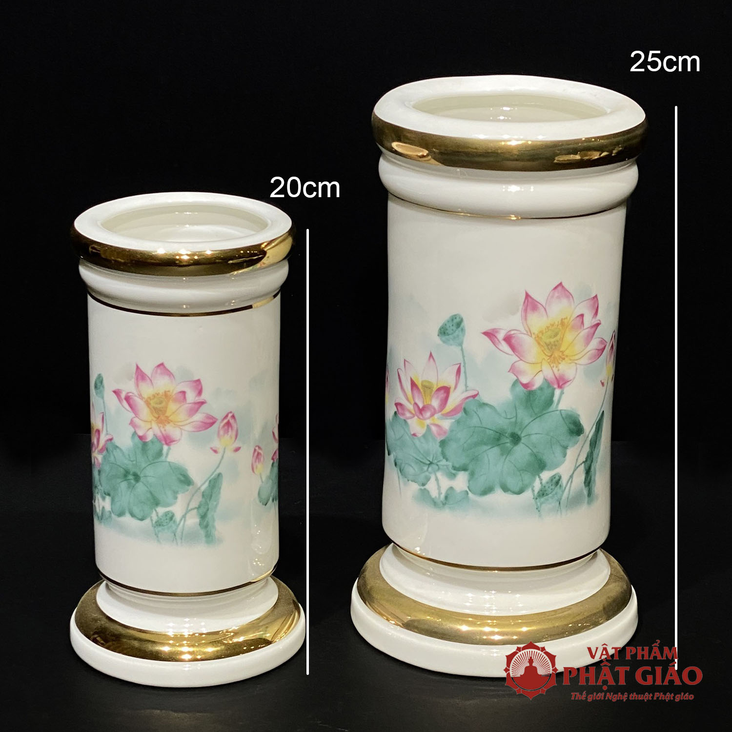 Ống Hương Sứ Trắng Sen Hồng Lá Xanh, Cao 20cm, 25cm