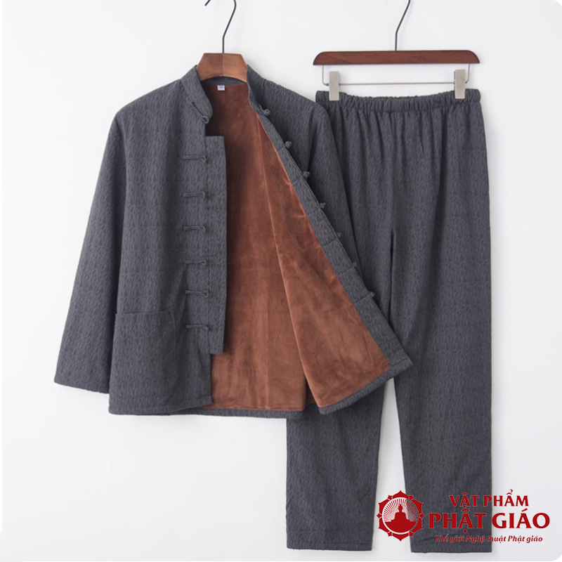 Pháp Phục Cư Sĩ, Phật Tử Nam Mùa Đông – Bộ Quần Áo Lót Lông Màu Ghi