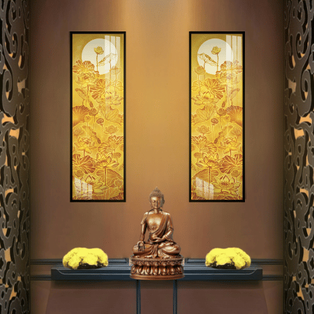 Bức tranh là lựa chọn lý tưởng để trang trí bàn thờ, đặc biệt khi đặt hai bên tượng Phật hoặc bàn thờ gia tiên, giúp tăng độ sáng, mang lại không gian ấm cúng, thanh tịnh và tràn đầy năng lượng tích cực. Với Tranh Trúc Chỉ In Đối Họa Tiết Hoa Sen Mặt Trăng TC174, gia chủ vừa sở hữu một vật phẩm trang trí tinh tế, vừa thể hiện lòng thành kính và gắn kết với truyền thống thờ cúng.