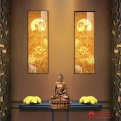 Tranh Trúc Chỉ In Đối Họa Tiết Hoa Sen Mặt Trăng TC321