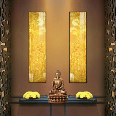 Tranh Trúc Chỉ In Đối Họa Tiết Mai Trúc TC165 là tác phẩm nghệ thuật tinh tế, kết hợp hình ảnh Hoa Mai – biểu tượng của sự nhẫn nại, cao thượng, quyền quý và lòng hy sinh cao cả – với cây Trúc, đại diện cho may mắn, tài lộc, sự kiên cường và trường thọ. Bức tranh không chỉ mang giá trị thẩm mỹ mà còn tạo nên không gian phòng thờ trang nghiêm, ấm cúng và thanh tịnh, đặc biệt khi đặt hai bên tượng Phật hoặc bàn thờ gia tiên.