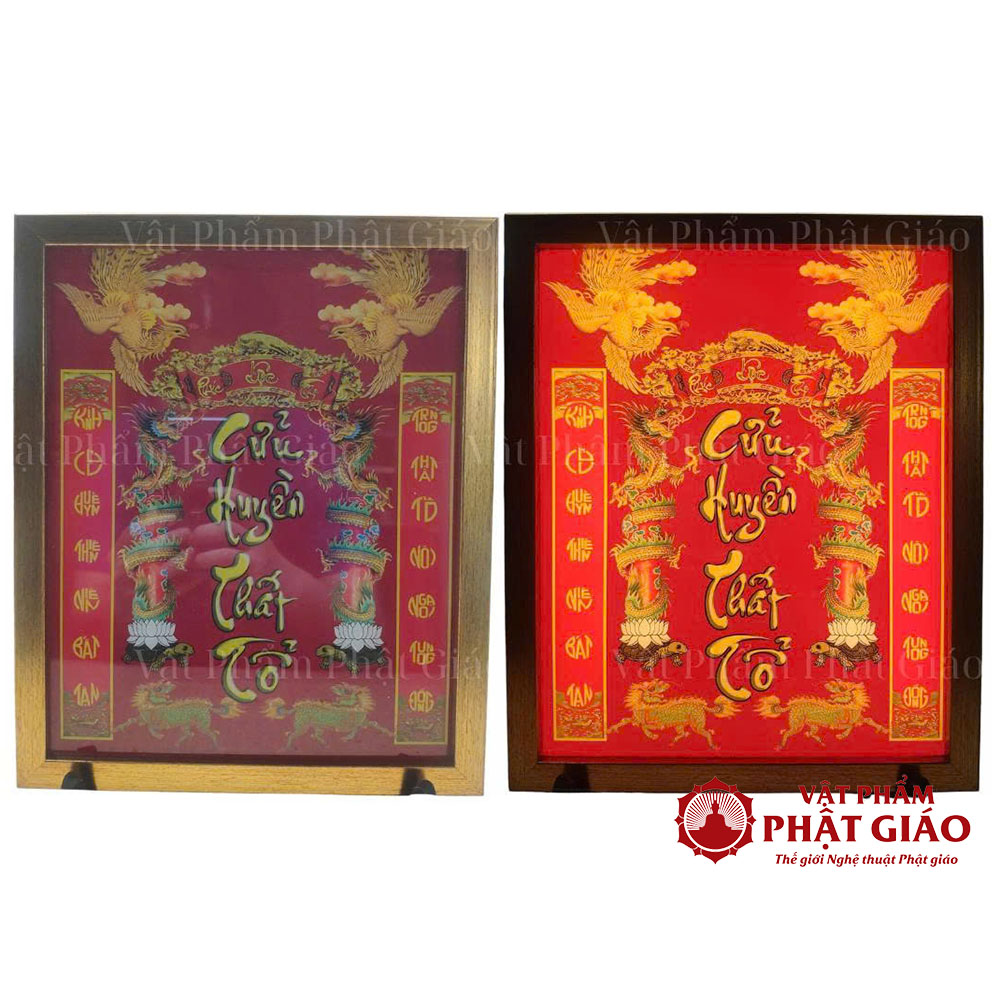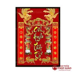 Tranh Trúc Chỉ In Đứng Cửu Huyền Thất Tổ Kèm Tứ Linh Màu TC502