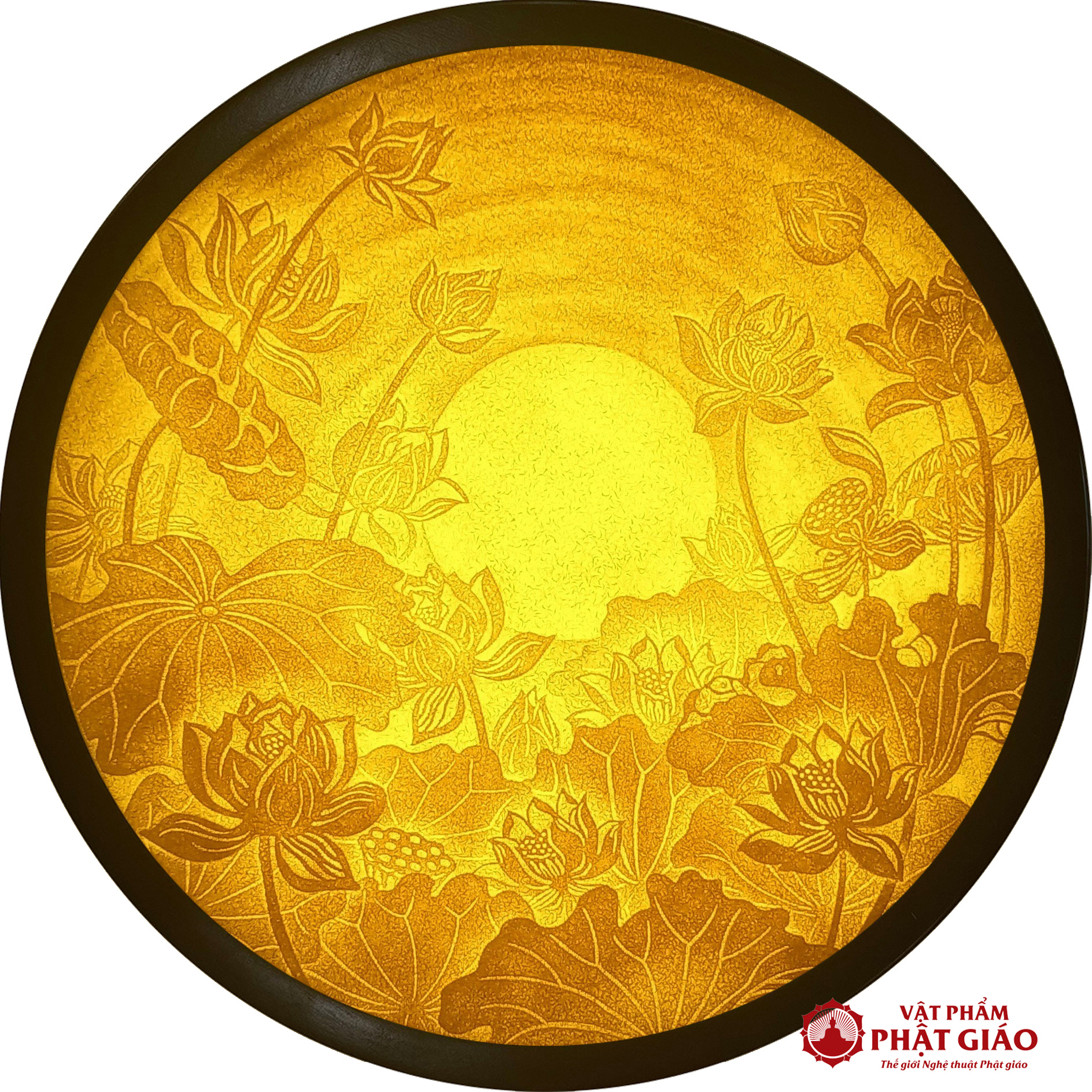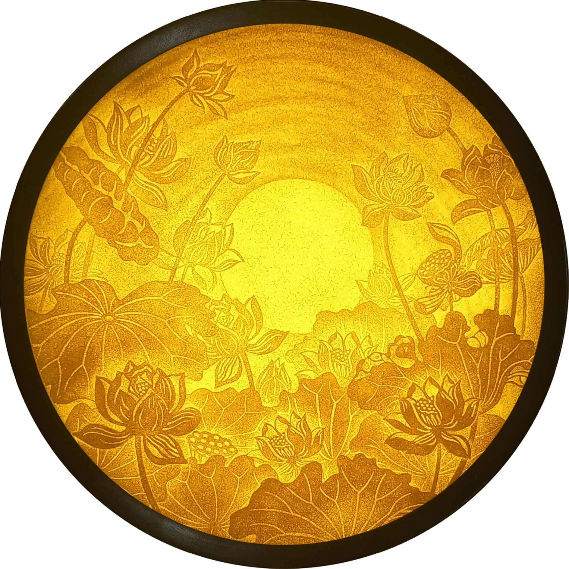 Tranh Trúc Chỉ Tròn Thủ Công Họa Tiết Hoa Sen Mặt Trời Mẫu AST06
