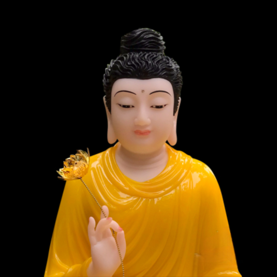 Đặt mua Tượng Bổn Sư Thích Ca Liên Hoa Ngồi Đài Sen Mầu Vàng Hổ Phách Bằng Bột Đá, Cao 40cm