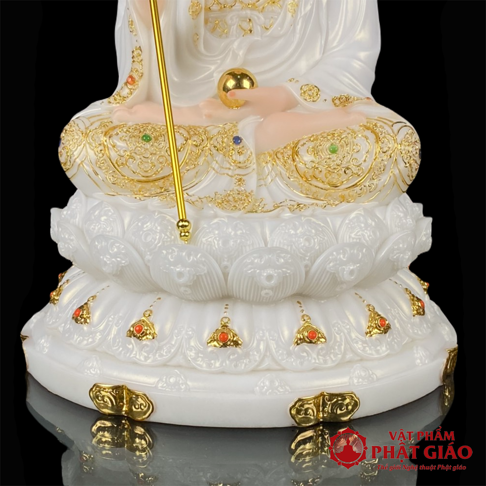 Tượng Địa Tạng Bồ Tát Bằng Bột Đá Trắng Viền Vàng, Cao 30cm, 40cm, 48cm