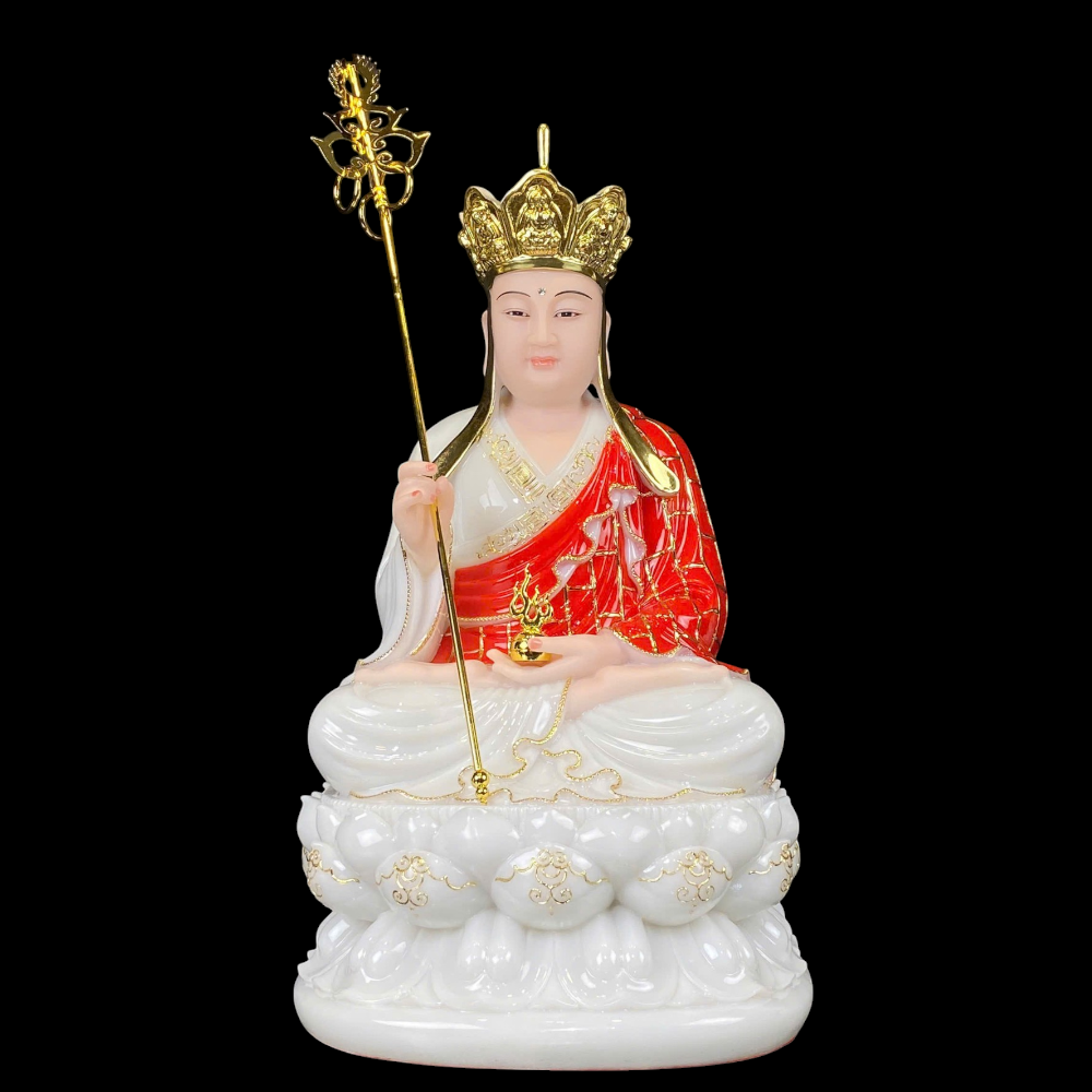 Tượng Địa Tạng Vương Bồ Tát Áo Đỏ là một biểu tượng linh thiêng trong Phật giáo, đại diện cho lòng từ bi vô lượng và tâm nguyện độ sinh sâu sắc. Hình tượng Tượng Địa Tạng Vương Bồ Tát ngồi trên tòa sen, tay cầm tích trượng và viên minh châu biểu trưng cho trí tuệ, năng lượng giác ngộ và sự bảo hộ đối với chúng sinh trong tam giới, đặc biệt là nơi địa ngục.