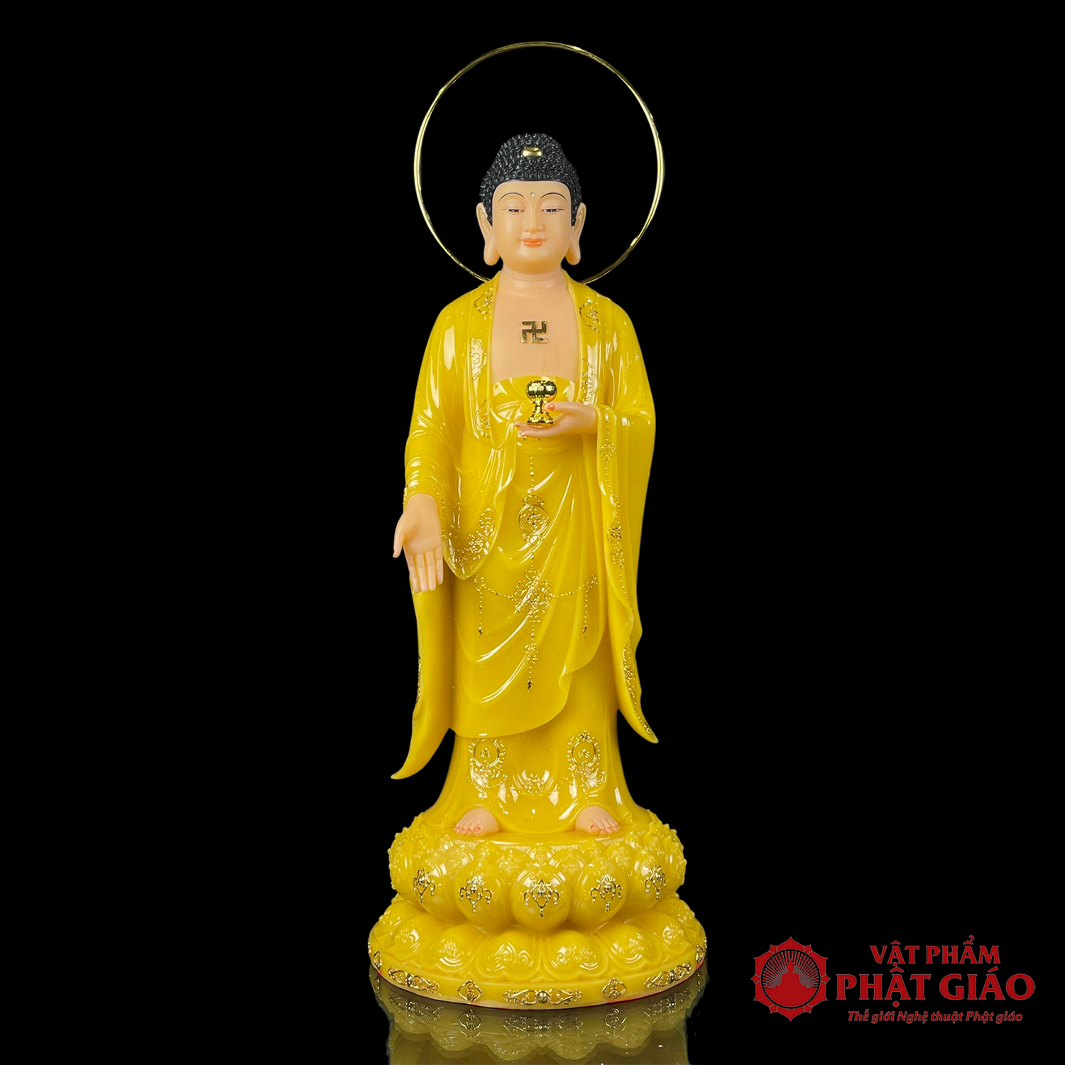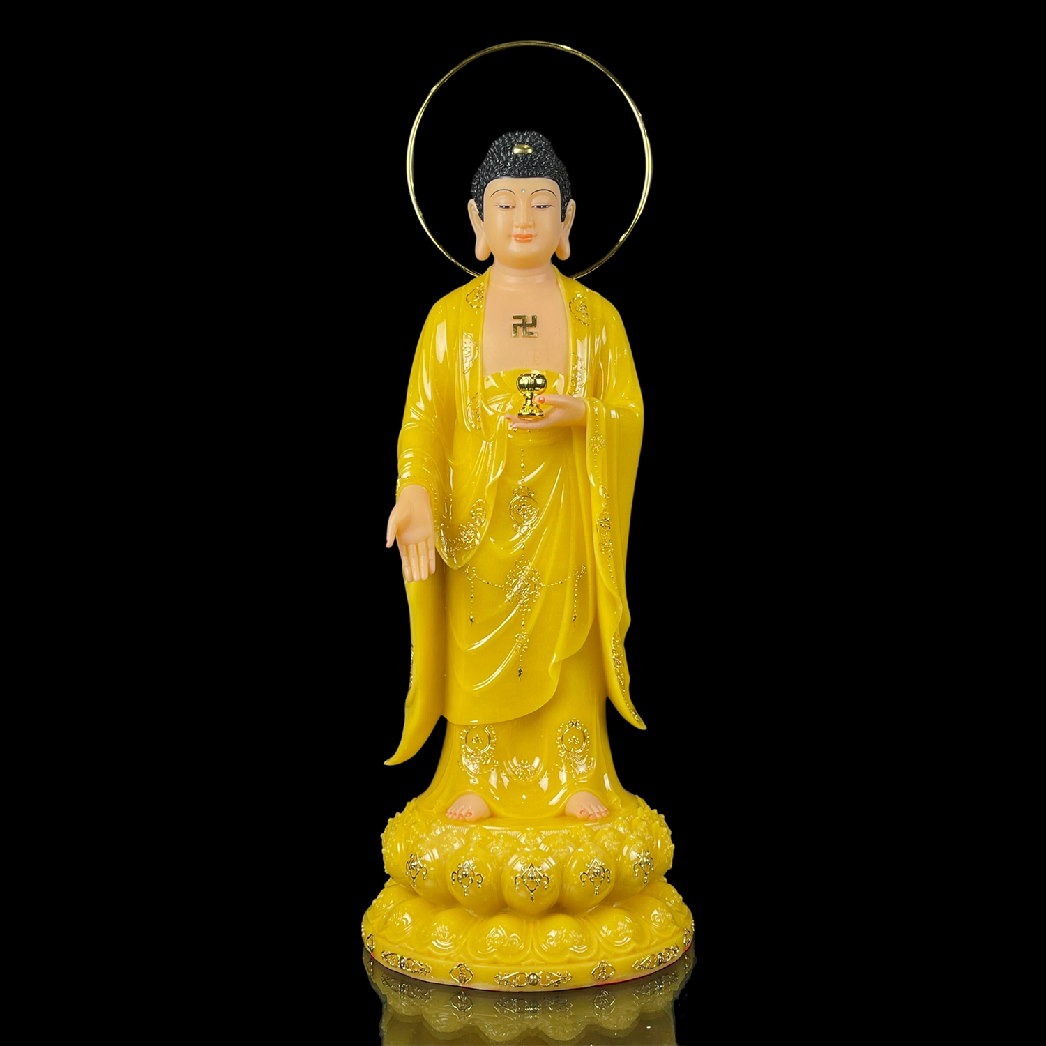 Đức Phật A Di Đà là biểu tượng của Vô Lượng Quang và Vô Lượng Thọ, mang ánh sáng trí tuệ vô tận và phước lành trường thọ. Thờ tượng Phật A Di Đà giúp gia chủ nuôi dưỡng tâm từ bi, hóa giải phiền não, hướng đến sự an lạc và thanh tịnh. Tư thế đứng tiếp dẫn biểu thị cho sự tiếp độ chúng sinh, dẫn dắt về cảnh giới Cực Lạc an lành.