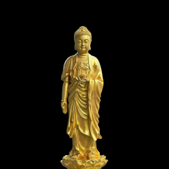 Đức Phật A Di Đà tượng trưng cho ánh sáng vô lượng và thọ mạng vô lượng. Thờ tượng Phật A Di Đà giúp gia chủ gieo duyên lành với cõi Cực Lạc, nuôi dưỡng lòng từ bi, buông bỏ phiền não, hướng tâm đến an lạc. Tòa sen vững chãi tượng trưng cho sự thanh tịnh, giải thoát khỏi luân hồi khổ đau.