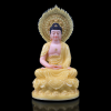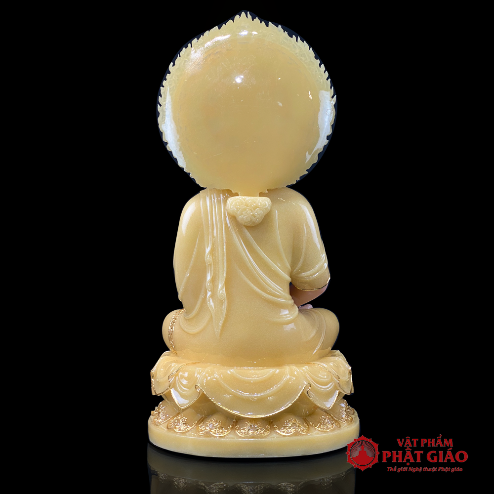Tượng Phật A Di Đà Ngồi Đài Sen Bằng Bột Đá Thạch Anh Viền Vàng Có Lá Đề