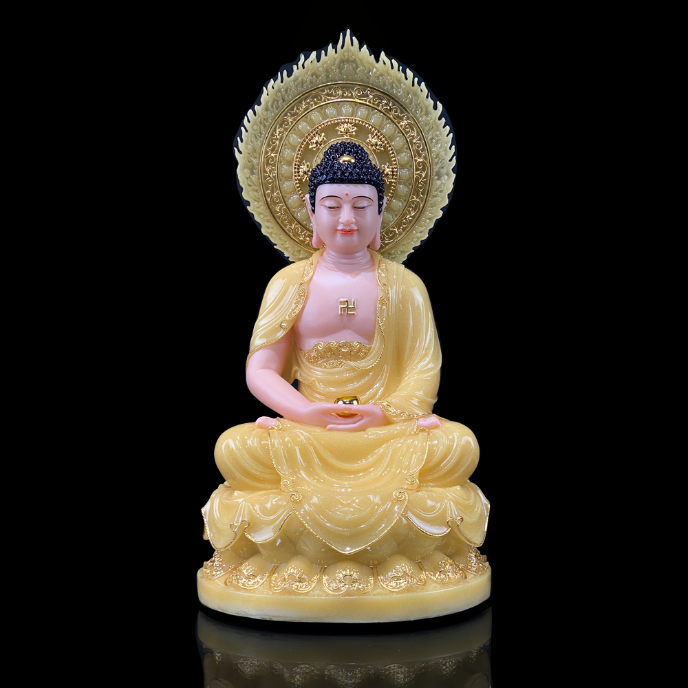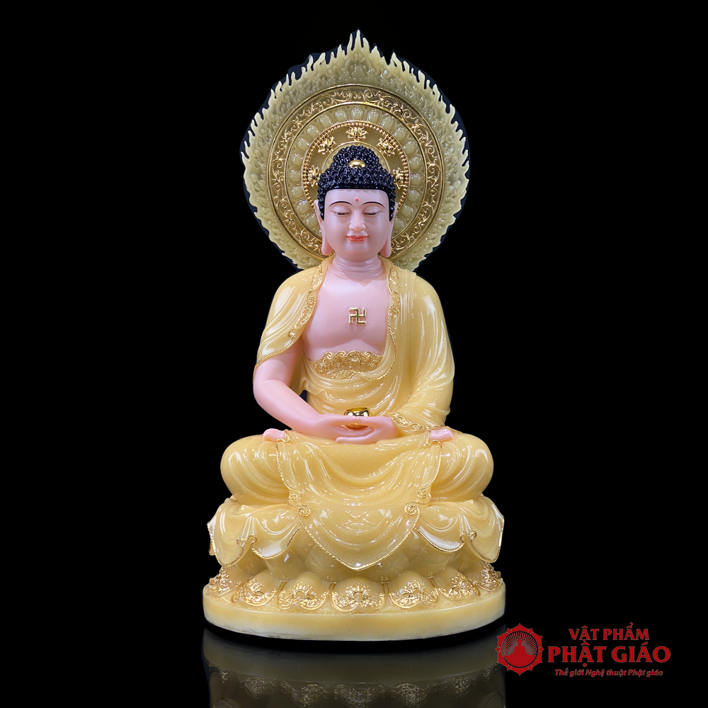 Đức Phật A Di Đà là vị Phật chủ cõi Tây Phương Cực Lạc, tượng trưng cho Vô Lượng Quang (ánh sáng vô lượng) và Vô Lượng Thọ (thọ mạng vô lượng). Thờ tượng Phật A Di Đà giúp gia chủ gieo duyên lành, diệt trừ nghiệp chướng, nuôi dưỡng lòng từ bi và trí tuệ. Tòa sen vững chãi biểu trưng cho sự thanh tịnh, trong khi lá đề phía sau tượng trưng cho sự giác ngộ, đưa con người ra khỏi vô minh để đạt đến an lạc giải thoát.