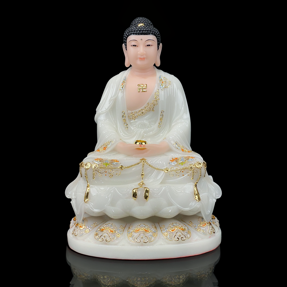 Tượng Phật A Di Đà Ngồi Đế Sen To, Bằng Bột Đá Trắng Viền Vàng, Cao 30cm, 40cm, 48cm