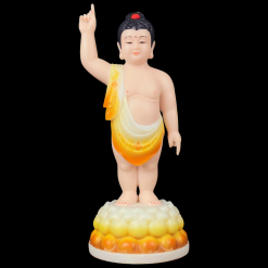 Tượng Phật Đản Sanh Bột Đá, Da Hồng, Áo Sơn Màu, Cao 40cm, 48cm, 65cm – Sự tôn kính đối với Đức Phật trong ngày giáng sinh trần thế.