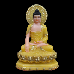 Tượng Phật Dược Sư bằng bột đá màu thạch anh vàng tượng trưng cho ánh sáng trí tuệ và năng lượng hồi phục, giúp thân tâm an ổn, hướng con người đến lối sống thiện lành và từ bi.