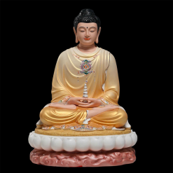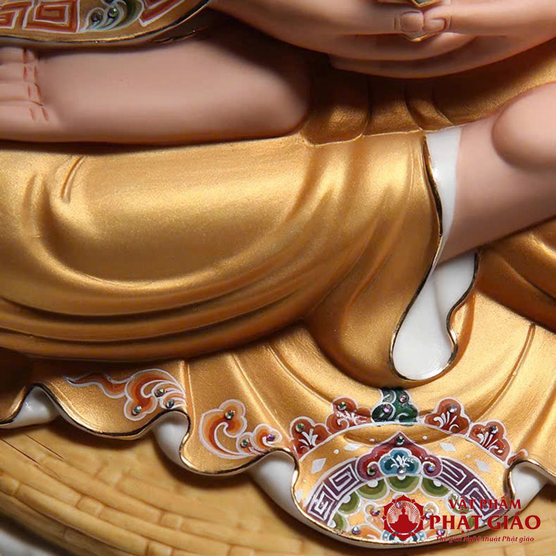 Tượng Phật Thích Ca Bằng Gốm Sứ Cao Cấp Y Vàng Vẽ Hoa, Cao 30cm 40cm 48cm