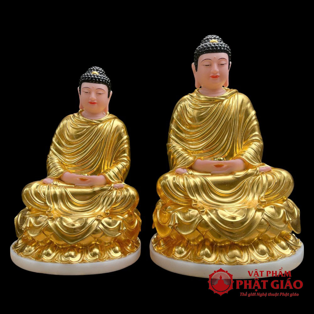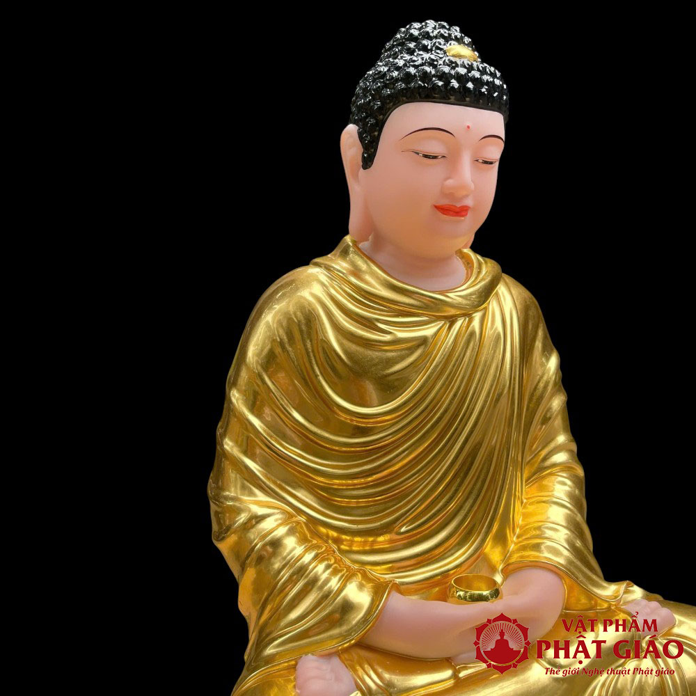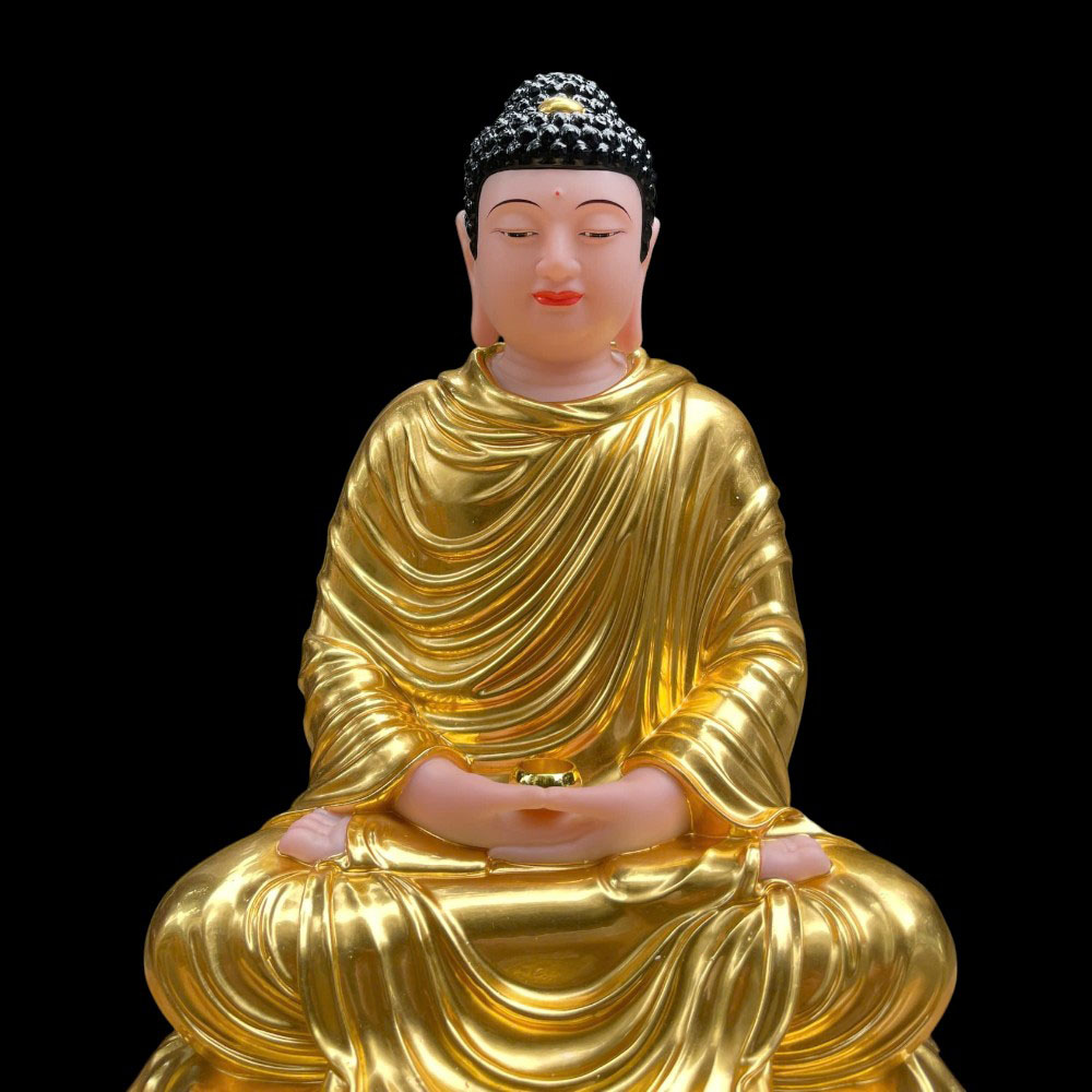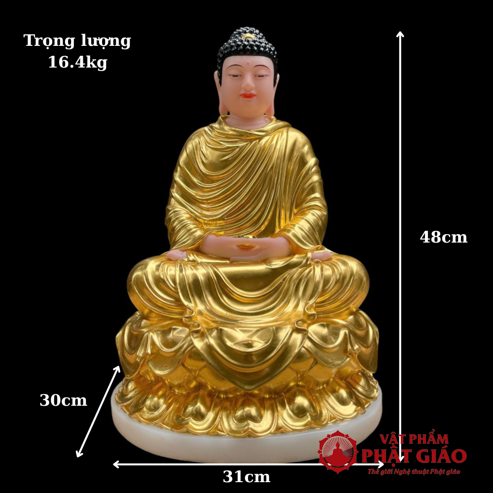 Tượng Phật Thích Ca Mâu Ni Ngồi Tĩnh Tâm Bột Đá Dát Vàng, Cao 40cm, 48cm