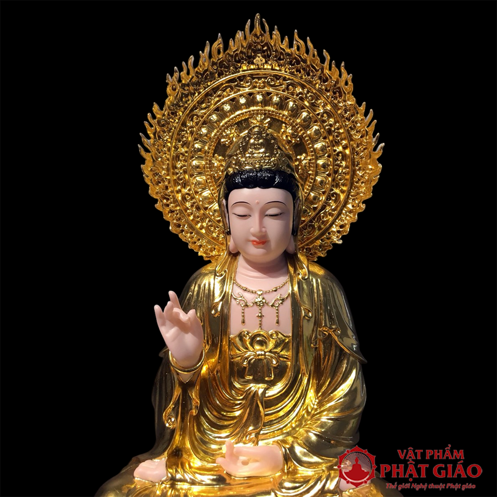 Tượng đạt chuẩn tỷ lệ – sắc diện từ hòa – dát vàng tinh xảo thủ công.