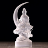 Tượng Quan Âm Bồ Tát Ngồi Mặt Trăng Non Nước Bằng Lưu Ly Màu Trắng, Cao 23cm