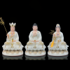 Bộ Tượng Ta Bà Tam Thánh Bằng Bột Đá Trắng Viền Vàng Ngồi Hoa Sen, Cao 30cm – 65cm