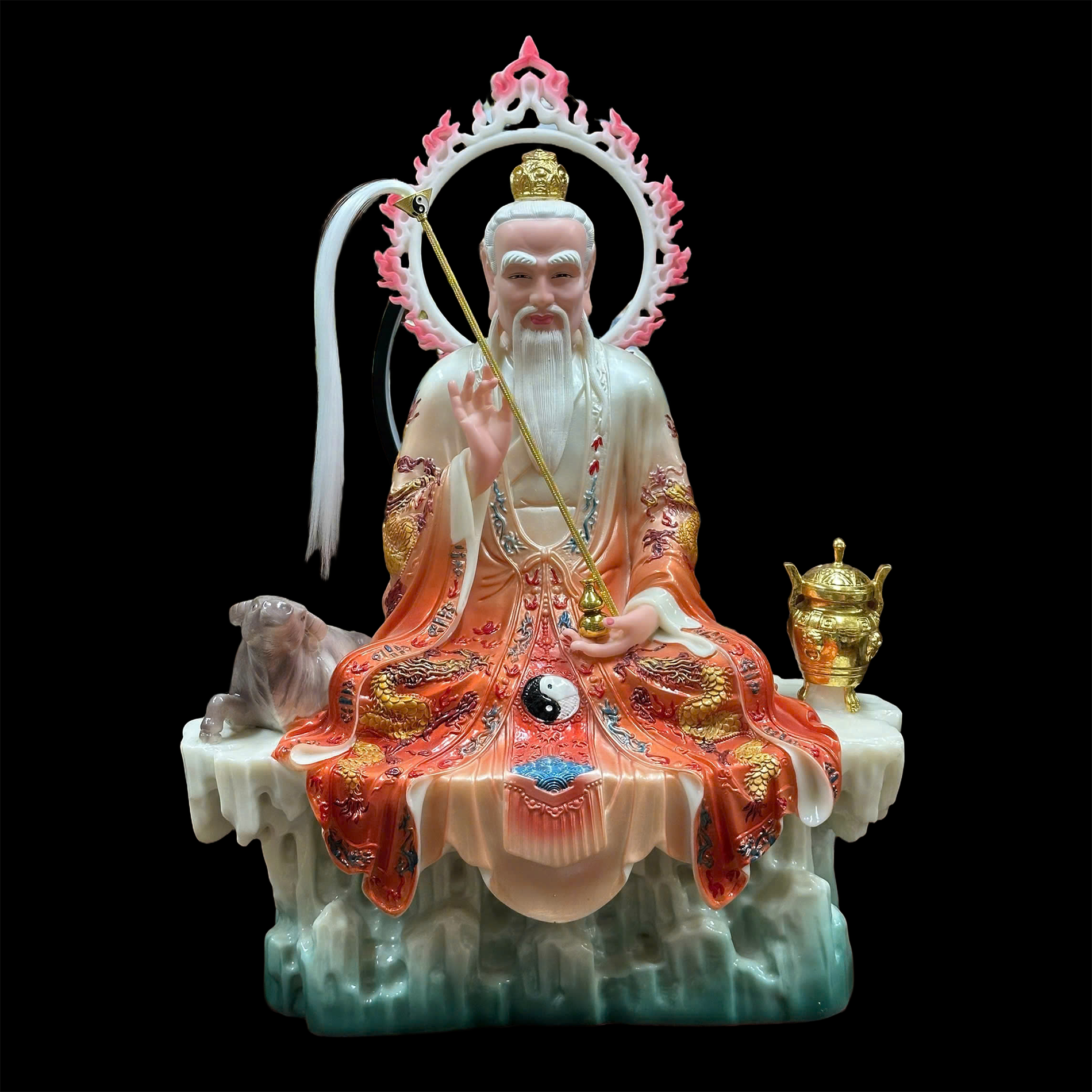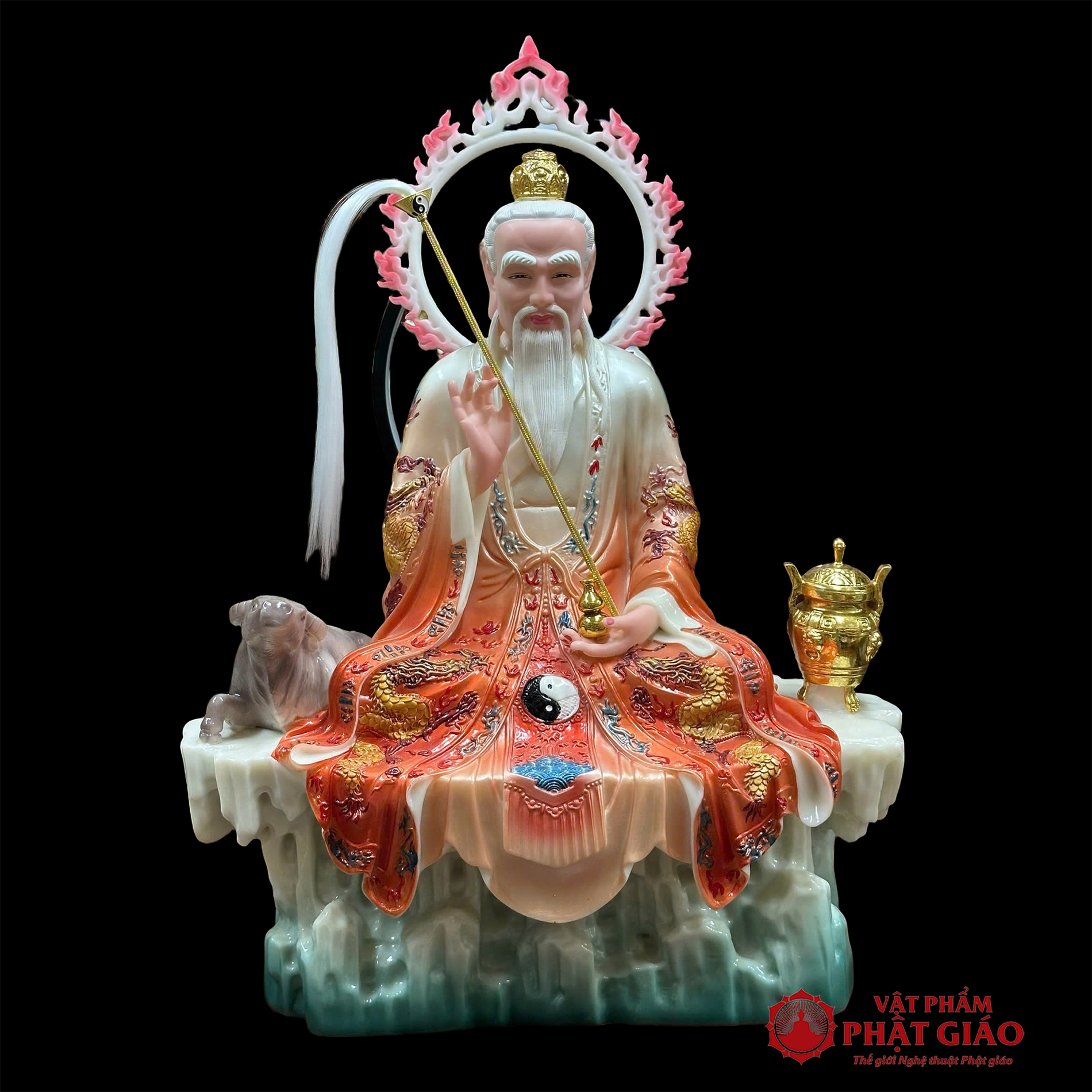 Thiết kế: Tôn tượng Thái Thượng Lão Quân được khắc họa với gương mặt từ hòa, dáng ngồi uy nghi, áo đạo bào tinh tế, thể hiện trí tuệ uyên thâm và sự linh thiêng của bậc đạo tổ.